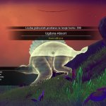 Po trzecie- nie rozwinięto fajnego pomysłu, który chyba najbardziej skłoniłby mnie do dalszej rozgrywki. Chodzi tu dokładnie o umiejętność nauki języka obcych form życia. Na każdej planecie, jak wspominałam wyżej, spotkamy starożytne ruiny i monolity kojarzące się z czarnym blokiem z “Odysei Kosmicznej”. Po interakcji z nimi uczymy się jednego lub kilku słów danej rasy. Dzięki bogatszemu słownikowi lepiej zrozumiemy intencje obcych spotykanych na posterunkach czy stacjach kosmicznych. Na screenie wyżej widzicie jak wyglądają takie dialogi. Pod avatarem obcego widzimy krótkie zdanie, w którym przetłumaczone są jedynie te słowa, które wcześniej udało nam się odkryć. W tym konkretnym przykładzie, dzięki temu, że odkryłam słowa: forma, życie i inteligencja mogę wywnioskować, że obcy prosi mnie o wskazanie moim zdaniem najbardziej inteligentnej formy życia. Do dyspozycji mam trzy odpowiedzi; dzięki translacji nie mam problemu ze wskazaniem prawidłowej. Każdy poprawny wybór daje nam niewielkie profity – zniżki w sklepie, jakiś gratisowy minerał etc. Sęk w tym, że są to drobiazgi mało satysfakcjonujące, że mozolne zbieranie słów nie skutkuje lepszymi nagrodami, że nie dowiadujemy się o całym uniwersum więcej. Nie pomagają nawet tekstowe opisy wydarzeń, które znajdujemy w opuszczonych stacjach. Brakuje im głębi, emocji, odczuwalnych skutków.