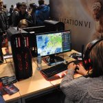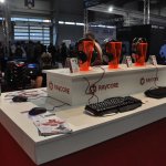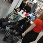 Nasze stoisko nie mogło się obyć bez jednego z największych trendów tego roku – wirtualnej rzeczywistości. Przygotowaliśmy dla Was dwie skrajności – z jednej strony mogliście wypróbować najprostszą (i zarazem najtańszą) formę VR – mobilne gogle dołączane do smartfonów Alcatel Idol 4 i Idol 4S-, z drugiej zaś najdroższy zestaw VR obecny na rynku konsumenckim- gogle HTC Vive. Wyśrubowane wymagania sprzętowe tego ostatniego spełniał Zotac ZBOX Magnus EN970 – jeden z najmniejszych i zarazem najbardziej potężnych mini pecetów (GeForce GTX 960, 16GB RAM-u, i5-5200U). Równocześnie testujący wirtualną rzeczywistość goście mogli także przetestować słuchawki HyperX CloudX i Cloud Stinger Kolejny raz przekonaliśmy się, że VR robi wrażenie na wszystkich, bez względu na wiek czy zainteresowania. Dla najmłodszych (choć jak się okazało również i starszym spodobała się taka forma zabawy) przygotowaliśmy tor, po którym można było pośmigać zdalnie sterowanym droidem Sphero BB-8.