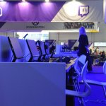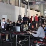 Wrażenie na graczach robił projektor Epsona (EB-G7400U) o jasności aż 5500 lumenów. Nasze obawy o to, że nie poradzi on sobie w jasnych warunkach oświetleniowych panujących na hali targowej okazały się bezpodstawne. Obraz był ostry jak żyleta i każdy mógł przekonać się na przykładzie Xboxa One i Forzy Motorsport 6, że projektor takiej klasy może w zupełności zastąpić telewizor. Gdyby tylko ta cena była mniejsza… 😉