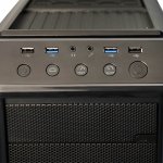 W obudowie znajdziemy też bardzo wiele otworów ułatwiających prowadzenie okablowania. Dzięki temu nic się w środku nie plącze i nie psuje efektu wizualnego. Na panelu przednim znajdziemy po dwa porty USB 2.0 i 3.1, wejście i wyjście dźwięku oraz przyciski sterujące szybkością wentylatorów.
