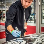 malowane było techniką dość tradycyjną, o ile można tak określić “mazanie flamastrami” po karoserii. Artysta – Maciej Polak – ozdabiał oklejony na biało samochód, wykorzystując do tego celu dwa kolory farby oraz specjalne flamastry z tuszem. A całość rejestrowały aż trzy urządzenia firmy