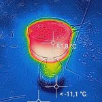 Korzystając z możliwości, jakie daje CAT60 mogliśmy nie tylko poczuć, ale też zobaczyć jak bardzo jest zimno… a także na ile dobrze izolują nasze ubrania, którędy ucieka ciepło z termosu (uciekało całkiem mocno, zobaczcie na zdjęciach!) i gdzie podczas gotowania robi się… zimno (uchodzący z butli gaz rozpręża się, odbierając ciepło – butla się schładza. To zasada działania lodówki.). Fantastyczna jest też możliwość oglądania świata mimo zupełnych ciemności. Zresztą, zobaczcie sami.