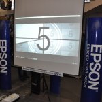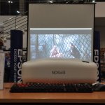 Przydała się także funkcja pamięci obiektywu, która zapisuje ustawienia projektora, takie jak położenie obrazu, ostrość czy zoom. Dzięki temu nie musieliśmy go konfigurować każdego dnia targów. EB-G74UU jest projektorem instalacyjnym do dużych pomieszczeń. Z racji ograniczonej przestrzeni na targach i braku dostępu do ściany posiadaliśmy ekran projekcyjny, który nie pozwolił nam wyświetlać obrazu przy maksymalnie oferowanej przekątnej 300-cali. Ale i przy mniejszym obrazie efekt zatrzymywał przechodzących obok nas gości.