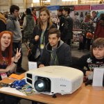 Opisywaliśmy już relację z całego festiwalu. Przyszedł czas, byśmy pokazali Wam jakie atrakcje przygotował dla odwiedzających Epson, który w tym roku był naszym partnerem. Dzięki Epsonowi stoisko CHIP-a zostało wyposażone w oszałamiający projektor instalacyjny WUXGA EB-G74UU, który przyciągał uwagę każdego odwiedzającego. Rzadko kiedy urządzenie tej klasy można bowiem obejrzeć na żywo, poza halami konferencyjnymi. Gdyby nie jego wysoka jasność (5500 lumenów) na targowej hali, w której brakowało przyciemnienia, nie bylibyśmy w stanie wyświetlić niczego. Dużą pomocą dla nas, jako obsługujących urządzenie okazała się jego łatwa instalacja. Projektor oferuje szereg złączy (2 x USB, Wejście i wyjście VGA, DVI, BNC, HDMI, HDBaseT). W razie potrzeby można było go także podłączyć poprzez Ethernet lub WiFi. My podpięliśmy go pod miniPC, który sprytnie dało się ukryć z tyłu, pod zdejmowaną przykrywką.