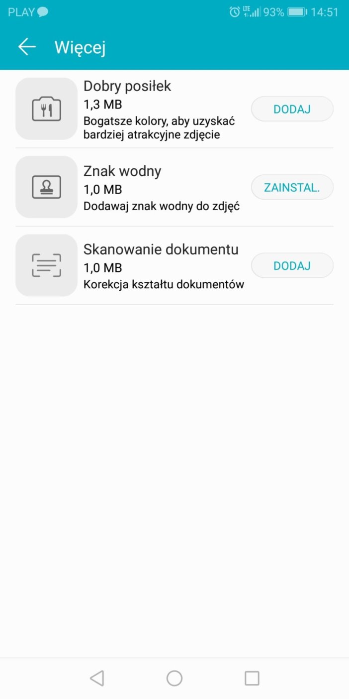 Ustawień wewnątrz aplikacji aparatu jest całkiem sporo. To samo tyczy się trybów predefiniowanych. Co ciekawe producent umożliwił pobranie dodatkowych. Wśród nich znalazł się także ten, który docenią instagramowicze, dla których posiłek niesfotografowany, posiłkiem straconym.