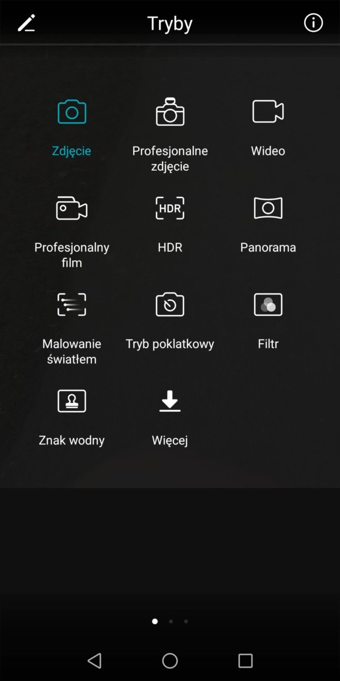 Aplikacja aparatu prezentuje się bardzo podobnie, jeśli nie identycznie, jak w innych konstrukcjach Huawei z ostatnich kilku miesięcy. Zawiera więc domyślny tryb fotografowania (zdjęcie) oraz trudniejszy, ale dający nieco więcej możliwości tryb “profesjonalne zdjęcie”. Pozwala on na przykład kontrolować pomiar jasności otoczenia, czułości ISO, czas migawki lub balans bieli.
