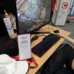 W strefie CHIP-a przygotowaliśmy trzy stanowiska gamingowe, na których można było wypróbować sporo ciekawego sprzętu. Podstawę stanowiły wydajne notebooki Asus ROG STIX GL703VD zapewniające dość mocy dla każdej gry. Do nich podłączyliśmy zestawy gamingowych akcesoriów Creative, obejmujące mechaniczne klawiatury Sound Blaster Vanguard, myszy Sound Blaster Siege M04 oraz słuchawki Sound Blaster X H5 i H3. Obraz można było podziwiać na zoptymalizowanych do gier monitorach LG, których mieliśmy trzy modele: LG 32GK850G, 27UK650 i 27GK750.