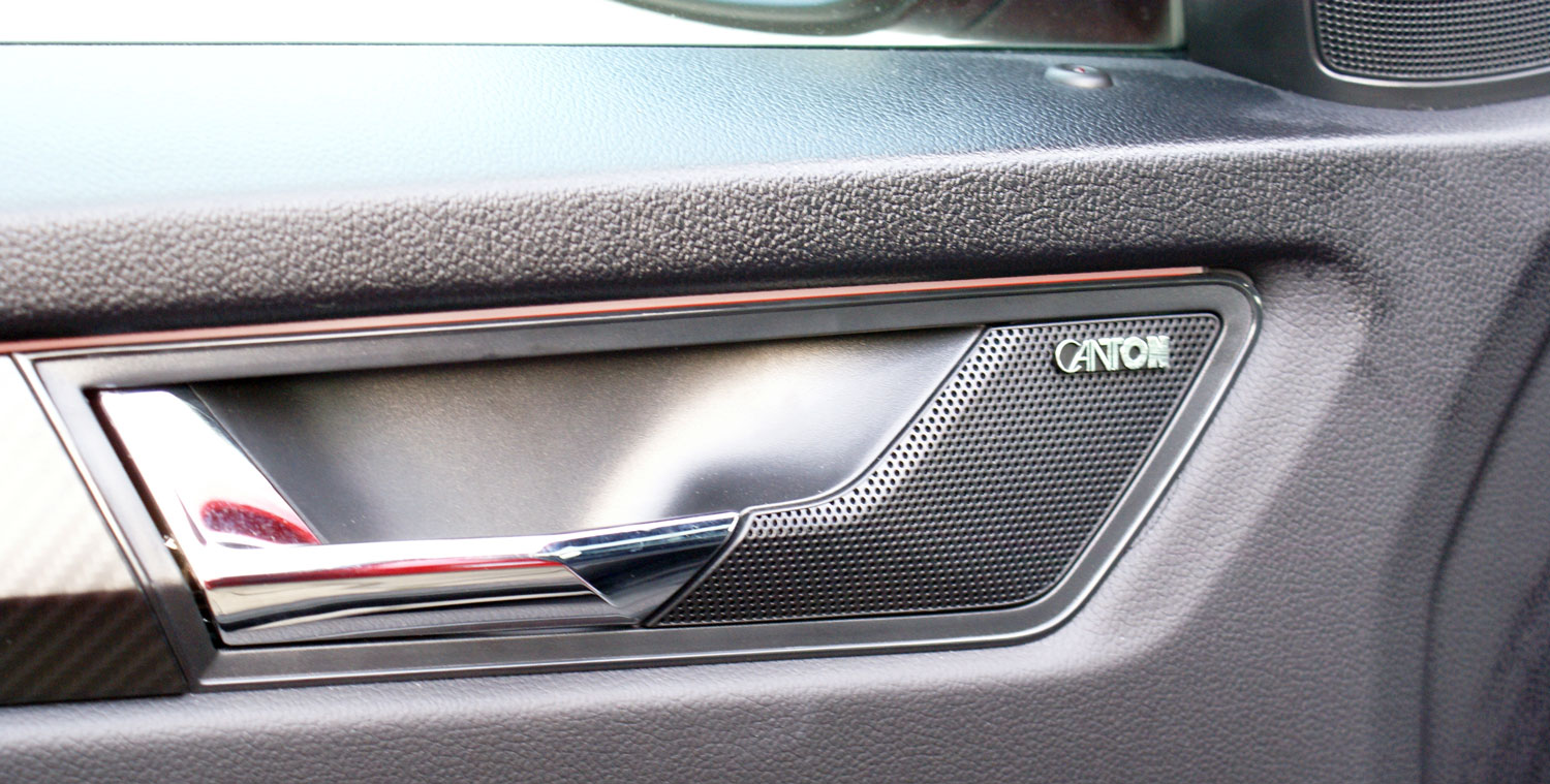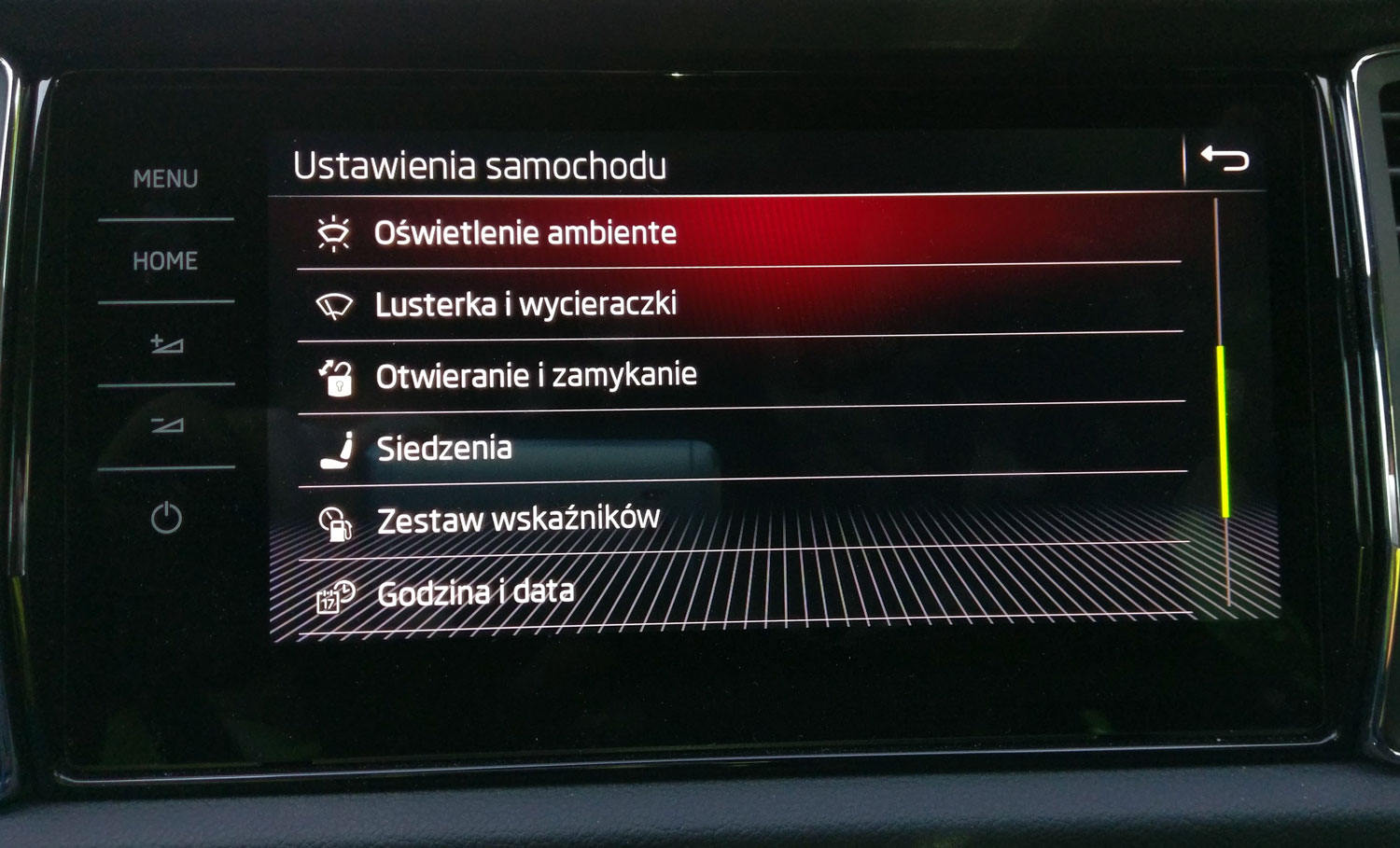 Na drzwiach kierowcy oprócz standardowego zestawu przycisków kontrolnych szyb bocznych w drzwiach i elektronicznej regulacji lusterek bocznych (standardowe wyposażenie) znaleźliśmy również jeden z dziewięciu głośników ponadstandardowego systemu nagłośnieniowego Canton. Sound System Canton to dziewięć głośników, subwoofer i moc 575 W. Oczywiście Canton nie stanowi wyposażenia standardowego Kodiaqa Sportline lecz opcję za 1600 zł. System ten nie tylko nieźle brzmi, ale też może być w szerokim zakresie regulowany za pośrednictwem pokładowego systemu multimedialnego, do ekranów konfiguracyjnych jeszcze wrócimy. Kontynuujmy tymczasem rekonesans po wnętrzu testowanego auta.