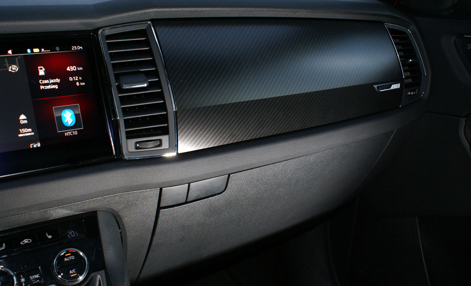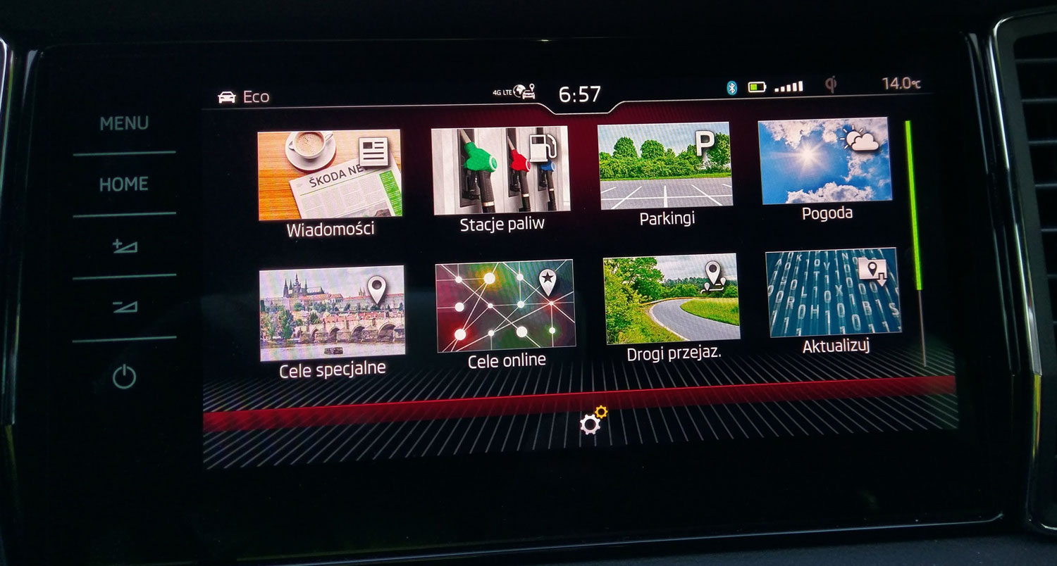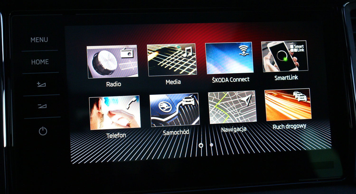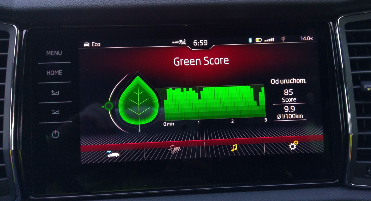 Testując auta zwracamy głównie uwagę na pokładowe systemy informatyczne, oprogramowanie służące rozrywce, jak i technologiczne rozwiązania zwiększające “inteligencję” drogową auta i wspomagające kierowcę. Pod względem ekranów Kodiaq prezentuje się naprawdę nieźle. Co prawda kierowca przed swoimi oczyma nie ma dużego ekranu LCD będącego zamiennikiem tradycyjnej tablicy rozdzielczej.