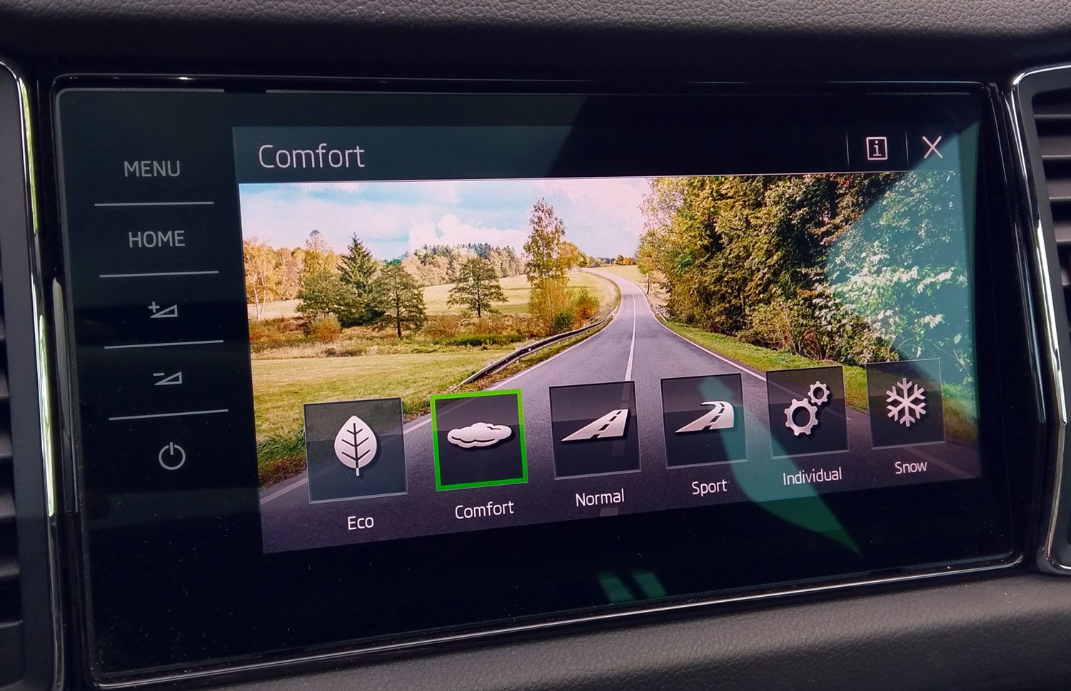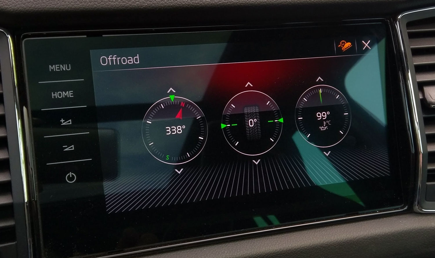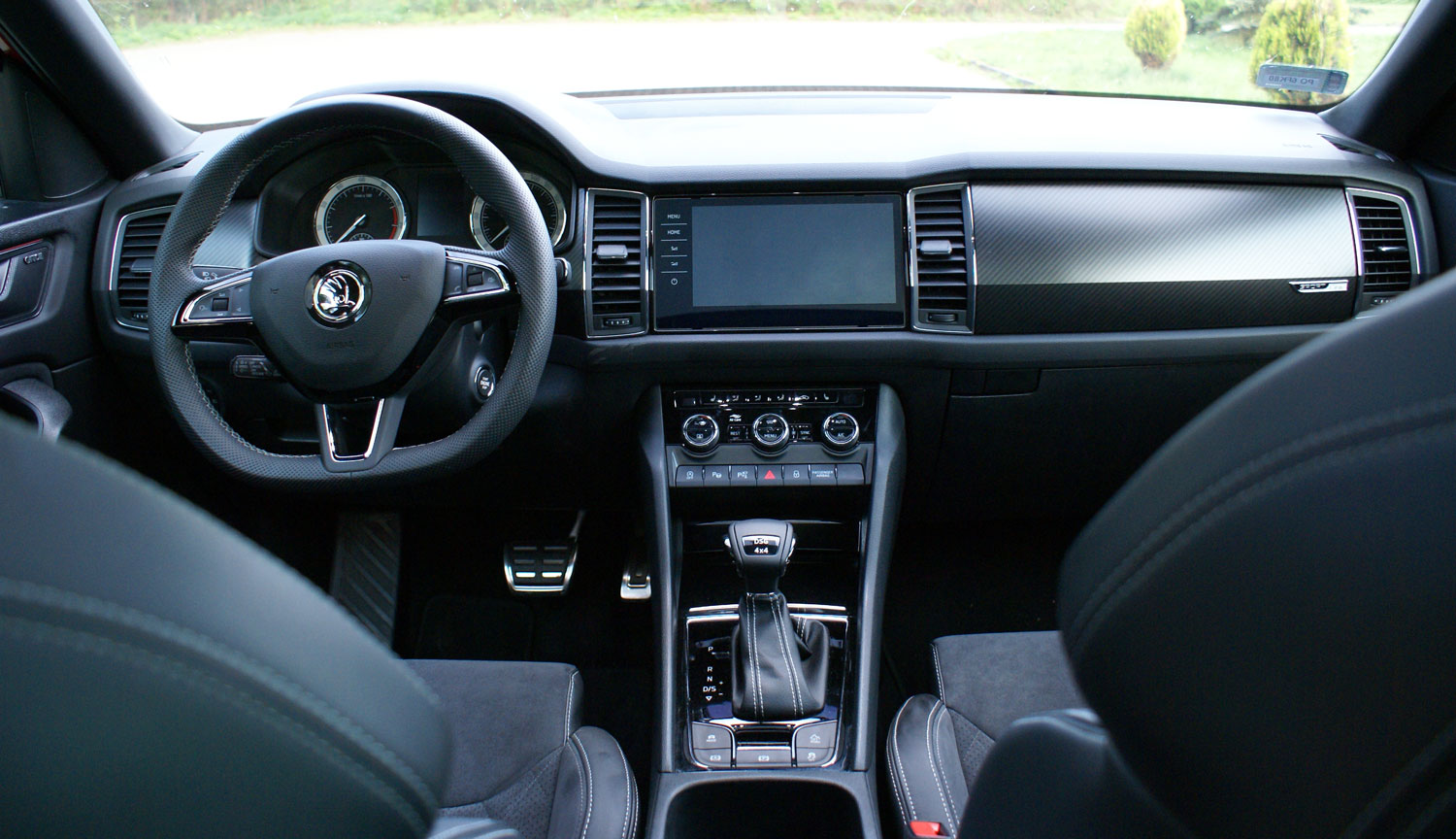 Testując auta zwracamy głównie uwagę na pokładowe systemy informatyczne, oprogramowanie służące rozrywce, jak i technologiczne rozwiązania zwiększające “inteligencję” drogową auta i wspomagające kierowcę. Pod względem ekranów Kodiaq prezentuje się naprawdę nieźle. Co prawda kierowca przed swoimi oczyma nie ma dużego ekranu LCD będącego zamiennikiem tradycyjnej tablicy rozdzielczej.