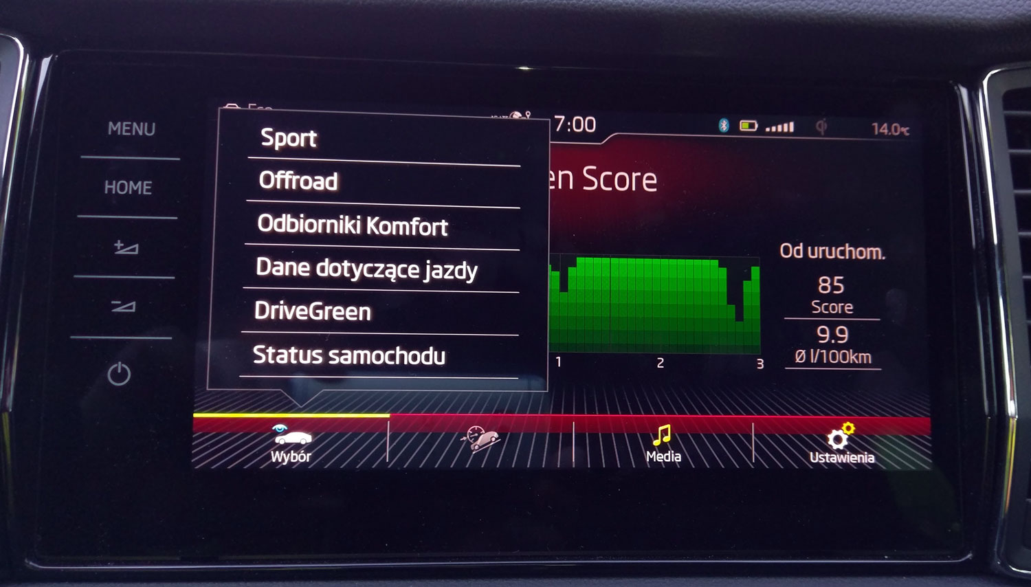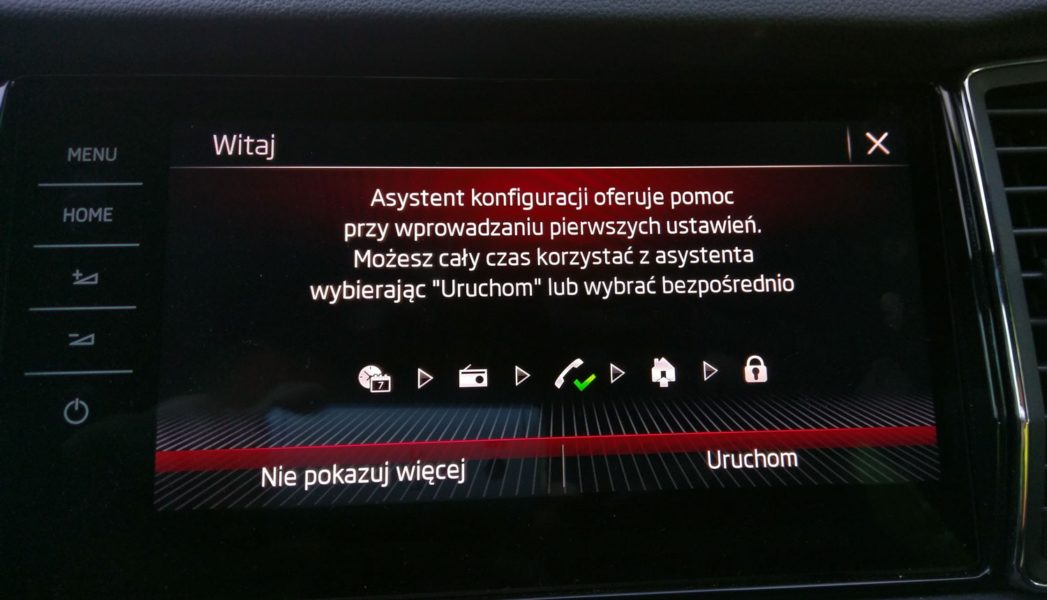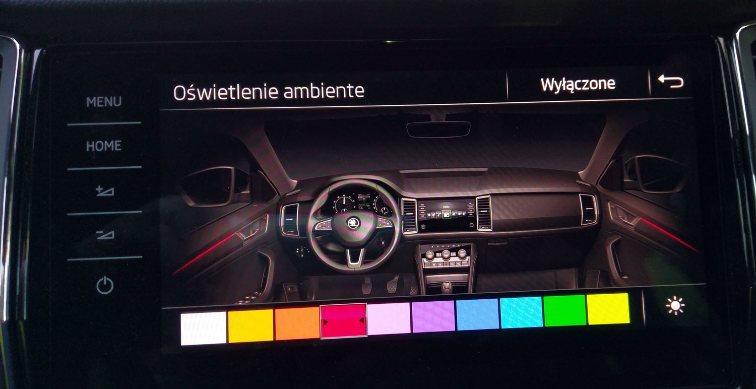 Największym ekranem w kabinie testowanego Kodiaqa Sportline jest 9,2-calowy ekran opcjonalnego systemu nawigacji satelitarnej Columbus z obsługą głosową, mapą Europy i interfejsem pokładowego systemu informacyjno-multimedialnego. To opcja w cenie 5700 zł. Oczywiście ekran ten służy nie tylko do nawigacji, w poniższej galerii możecie zobaczyć kilka przykładów jego wykorzystania. Po kliknięciu w zdjęcie w galerii zobaczycie powiększone ujęcia z podpisami wyjaśniającymi co w danej chwili jest wyświetlane. Podpowiemy jeszcze, że sterowanie funkcjami wyświetlanymi na tym ekranie możliwe jest poprzez interfejs dotykowy, a także poprzez sterowanie głosem (w języku polskim). Za pomocą komunikatów głosowych możemy ustawiać cele w nawigacji (bywa, że auto źle zrozumie wypowiedzianą nazwę ulicy, ale w większości przypadków to działa poprawnie), czy np. wywoływać połączenia telefoniczne z listy kontaktów sparowanego z pojazdem smartfonu.