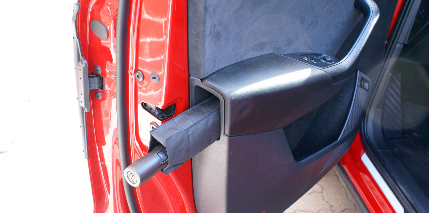 Škoda Kodiaq to auto, w którym nie brakuje praktycznych “smaczków”. W drzwiach kierowcy i pasażera z przodu znajdziemy po parasolce – w sam raz gdy po dojechaniu na miejsce wita nas deszcz. Czego można się spodziewać po otwarciu klapki wlewu paliwa? Cóż, wlewu paliwa, prawda? Škoda zaskakuje kolejnym drobiazgiem – umieszczoną na drzwiczkach wlewu paliwa fabryczną skrobaczką do szyb. Takich użytecznych drobiazgów w tym aucie jest więcej, ale może najwyższy czas wsiąść do środka.