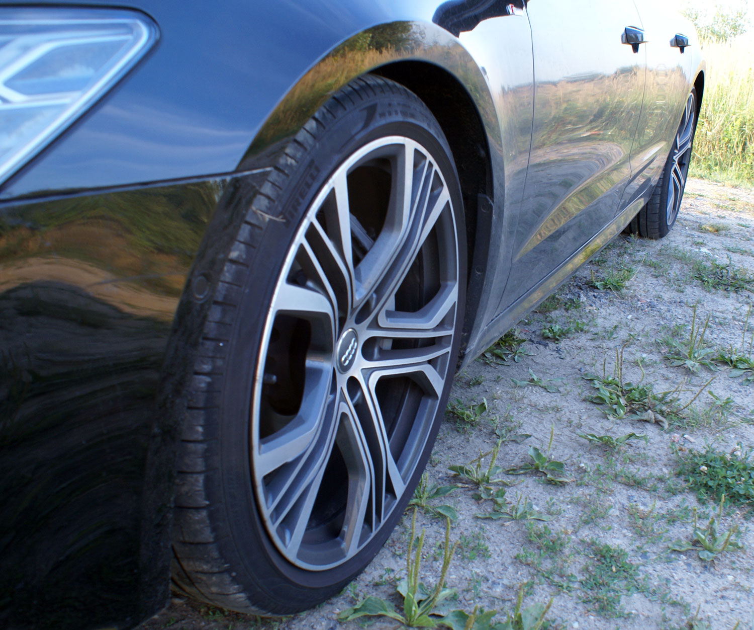 Auto jak na usportowione nadwozie przystało jest niskie (wysokość 1422 mm). Dodatkowym sportowym akcentem jest umieszczony u zwieńczenia długiej pokrywy bagażnika, na łukowatej krawędzi auta elektrycznie wysuwany spojler. Wysuwa się on automatycznie powyżej 120 km/h. Rozstaw osi to niemal 3 metry (2926 mm). Na tej podstawie może się wydawać, że manewrowanie tym kolosem to koszmar kierowcy. Nic bardziej błędnego – mimo znacznych gabarytów testowana A7-ka była wyposażona w kilka rozwiązań znacznie poprawiających manewrowość.