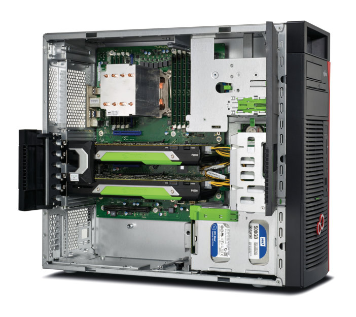 Do podłączenia wielu wydajnych kart graficznych w jednej stacji roboczych potrzebne są odpowiednie zasoby. Po pierwsze większość z nich wymaga osobnego złącza PCI Express o pełnej specyfikacji, czyli PCI Express x16 3.0. Zwykłe pecety mają najczęściej tylko jedno takie złącze. Rzadziej zdarzają się dwa a zaawansowane stacje robocze takie ja dwuprocesorowa stacja Fujitsu Celsius R970 ma ich aż cztery. Po drugie złącza te muszą być odpowiednio oddalone od siebie tak, by przykładowo można było zainstalować w każdym z nich wydajną kartę graficzną podwójnej grubości, taką jak Nvidia Quadro P5000 czy P6000. Te wydajne akceleratory muszą być odpowiednio chłodzone i dlatego zajmują znacznie więcej miejsca w obudowie komputera. Są nie tylko grubsze, ale i dłuższe i dlatego obudowy najbardziej wydajnych stacji roboczych są duże.