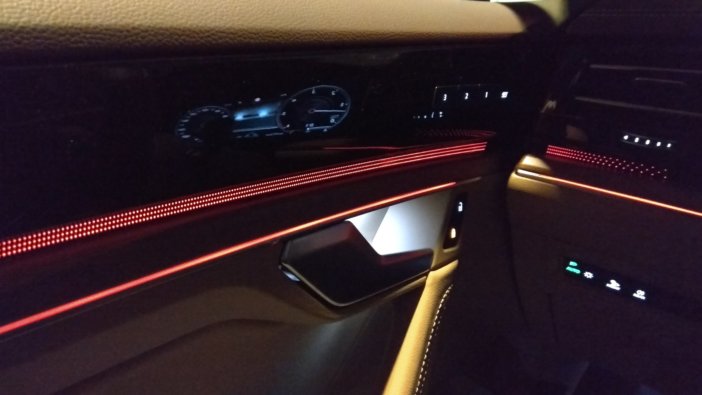 Kupujący auto czasem zastanawiają się nad kolorem samochodowych zegarów i stylistyką wnętrza. W Touaregu barwy wybieramy samodzielnie i możemy je w każdej chwili zmienić. Kierowca robi to za pomocą elektronicznego suwaka modyfikującego kolor, który dominuje na wyświetlaczach i nocą także w elementach wnętrza kabiny. Bardzo przyjemne.