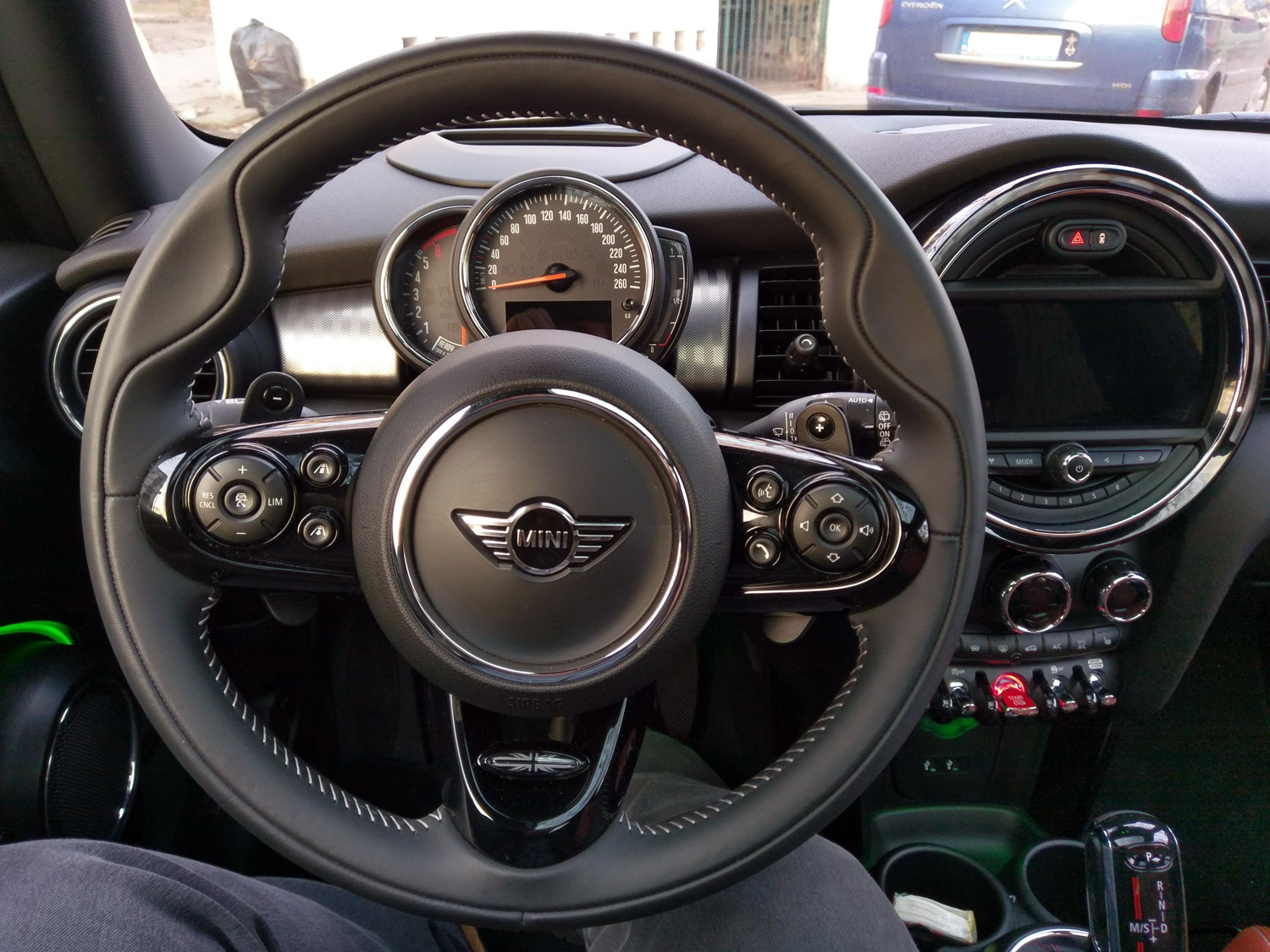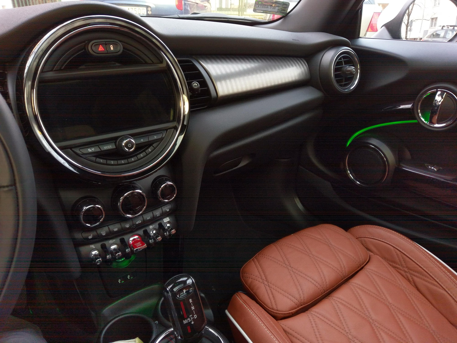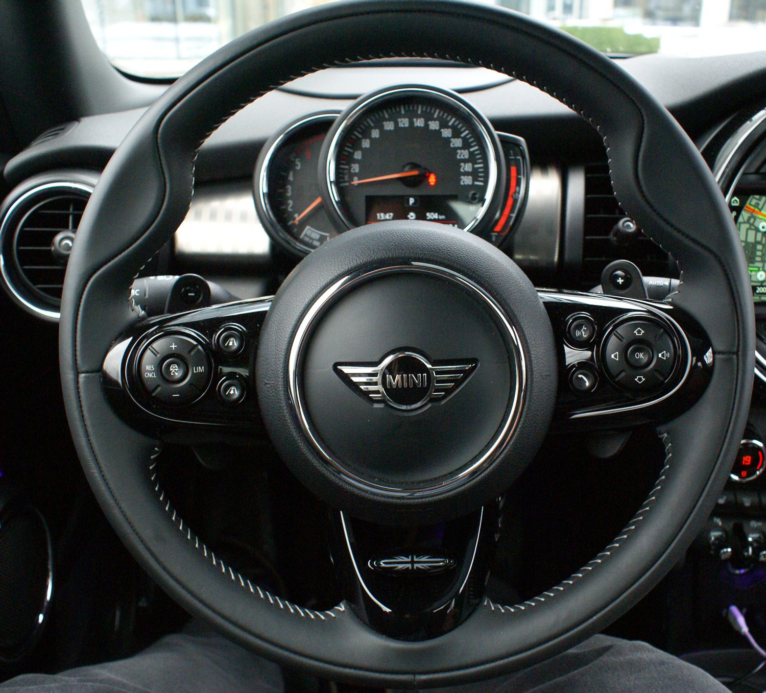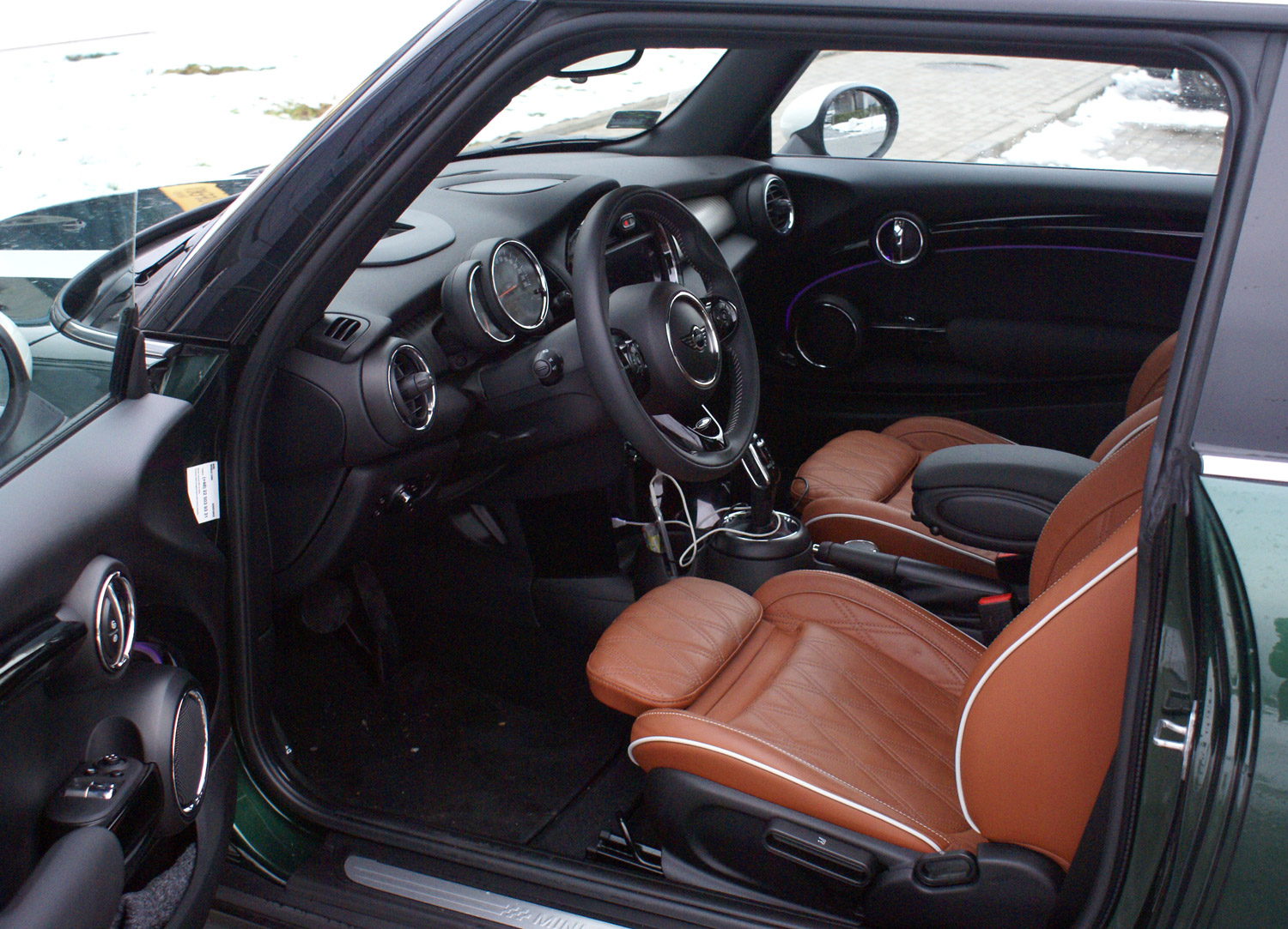 Kokpit Mini, mimo że znacznie nowocześniejszy niż w starszych wersjach, nie został pozbawiony fizycznych przycisków i przełączników. Wręcz można napisać, że stanowią one o klasycznym stylu tego pojazdu. Przycisk Start/Stop uruchamiający silnik, czy przyciski uaktywniające m.in. asystenta parkowania, sterujące kontrolą trakcji czy przełączające pomiędzy trzeba dostępnymi w tym aucie trybami prowadzenia (Green, Mid i Sport) wyglądają bardzo fajnie, jednoznacznie kojarząc się z przełącznikami w autach sportowych.