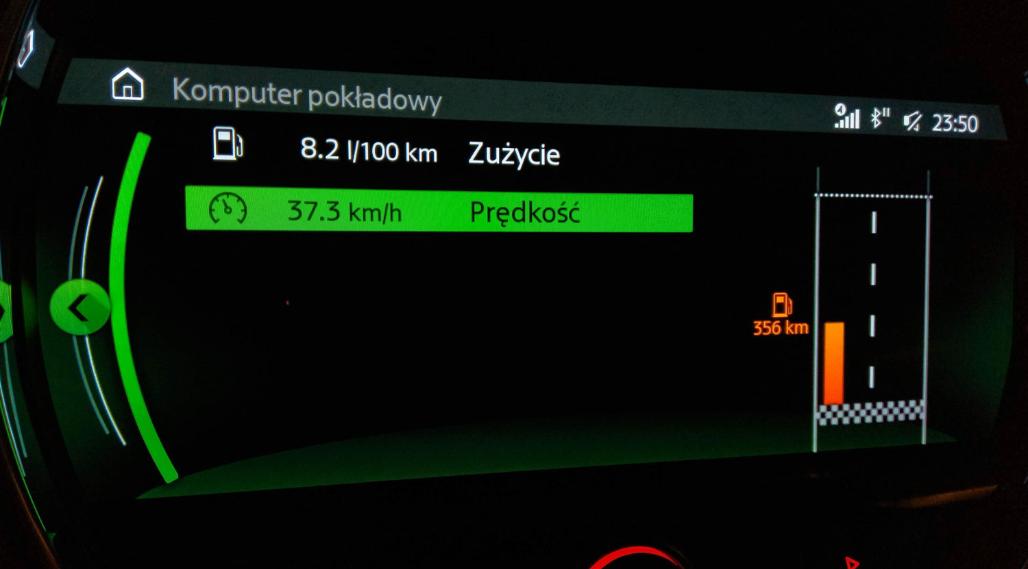 Muszę jednak wspomnieć o pewnym, dość dziwnym zachowaniu się systemów testowanego Mini. Testując nowoczesne samochody przyzwyczaiłem się już trochę, że są one wyposażone w coś w rodzaju asystenta jazdy w korku. Po prostu tempomat adaptacyjny reguluje prędkość w szerokim zakresie prędkości. Jeżeli więc jedziemy za jakimś pojazdem z włączonym tempomatem i pojazd poprzedzający zaczyna hamować, auto z adaptacyjnym tempomatem hamuje również. W wielu pojazdach to automatyczne wyhamowywanie odbywa się do pełnego zatrzymania, ale nie zawsze. Dlatego zawsze należy sprawdzać, w jakim zakresie prędkości dany system asystujący działa. W Mini opisywany system dopasowania prędkości na podstawie pomiaru radaru o zasięgu 120 metrów pracuje w zakresie prędkości od 30 km/h do 140 km/h. Zatem gdy prędkość spada poniżej 30 km/h Mini zamiast dalej hamować, wyświetla kierowcy ostrzeżenie że zbliża się do pojazdu i to człowiek powinien zareagować. Ot, taka niespodzianka i ważny powód do pełnej czujności.