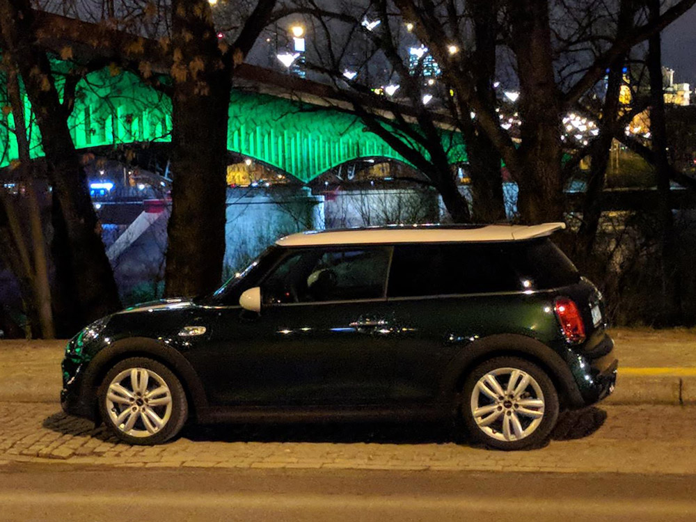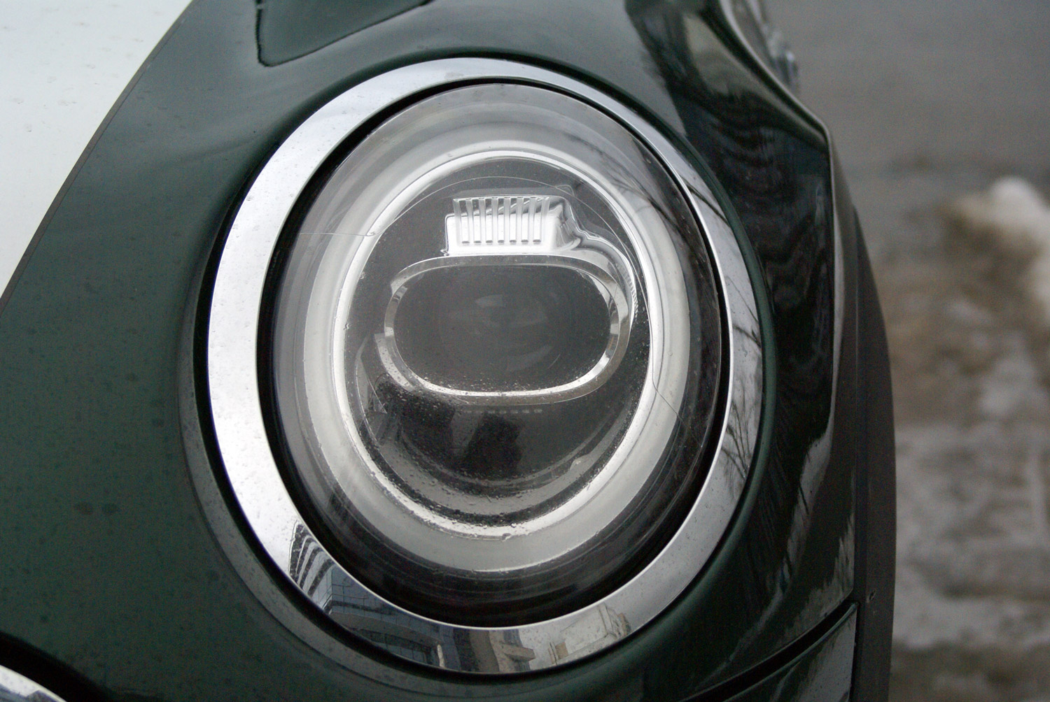 Gdy patrzymy na to auto, trudno dostrzec, co się zmieniło w porównaniu z trzecia generacją tego samochodu. Z zewnątrz istotnie niewiele, ale jest parę zmian. Przede wszystkim uwagę przykuwają charakterystyczne, przednie reflektory LED do jazdy dziennej w kształcie koła oraz nowe reflektory diodowe z matrycowymi (4 strefy), automatycznymi światłami drogowymi. To zmiana znacząco podnosząca bezpieczeństwo podróży w nocy poza miastem. Wcześniejsze wersje Mini matrycowych świateł drogowych nie miały.