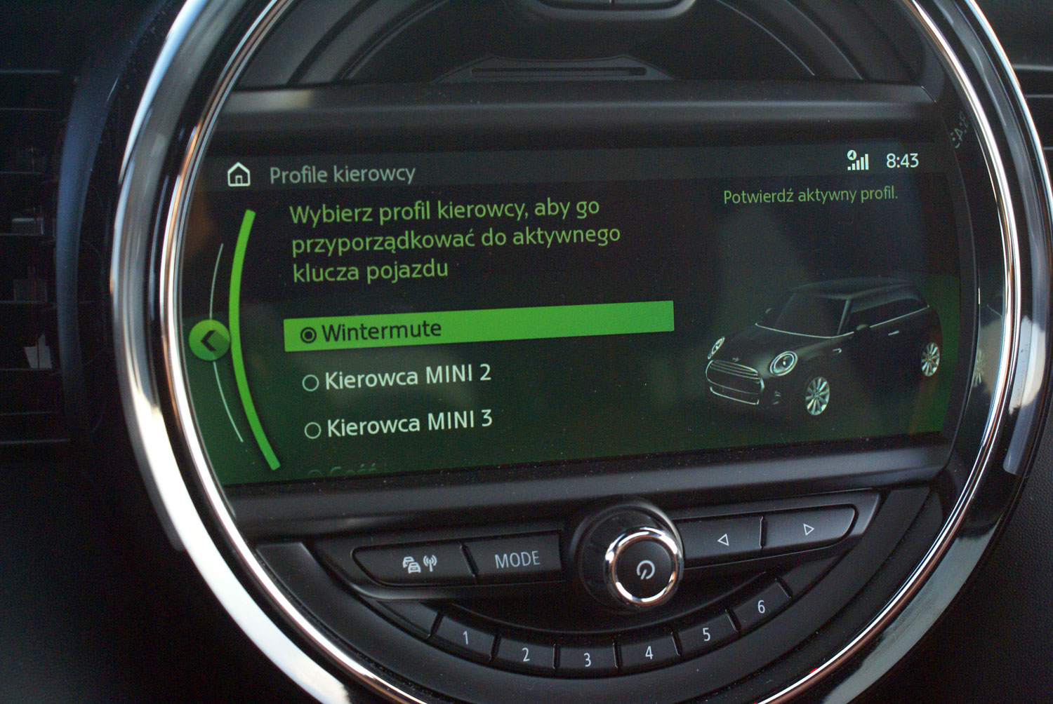 Generalnie system Mini Connected zapewnia posiadaczowi Mini dostęp zarówno do funkcji rozrywkowych, komfortowych, jak też do informacji o pojeździe, trasie, nawigacji, sytuacji na drodze itp. System ten zapewnia także łączność telefoniczną, odbiór SMS-ów czy maili za pośrednictwem pokładowej inforozrywki i wiele, wiele więcej. Główne menu systemu widoczne na 8,8-calowym ekranie w konsoli centralnej podzielone jest na sześć głównych modułów: Nawigacja, Moje Mini, Mini Connected, Powiadomienia, Komunikacja oraz Media/Radio. W każdym z tych modułów oprogramowanie wbudowane w system auta daje dostęp do wielu różnych, konfigurowalnych opcji powiązanych tematycznie. Wszystkie ustawienia jakich dokonamy w elektronicznym systemie komputerowym Mini, możemy przypisać do jednego z trzech wbudowanych profili kierowców. Dzięki temu, w sytuacji, gdy z tego samego pojazdu korzystają np. dwie osoby, każda z nich może mieć auto ustawione “pod siebie”.