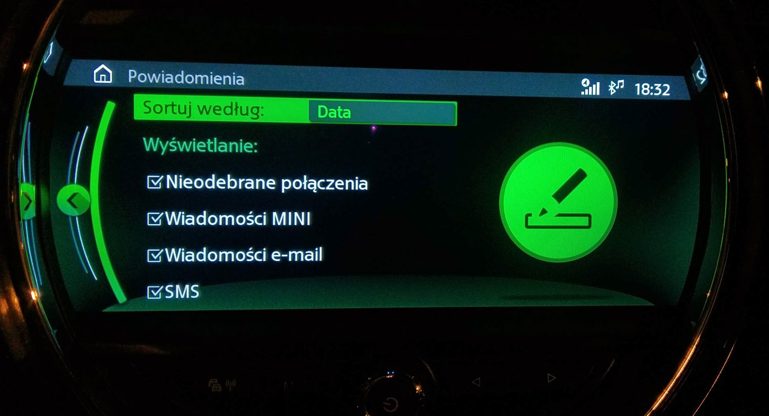Nowością w Mini jest nowy, stale połączony z siecią system inforozrywki. Do niego jeszcze wrócimy, tutaj skupię się na jego głównym wyświetlaczu, czyli dość dużym monitorze umieszczonym w konsoli centralnej. Obraz jest dość wysokiej rozdzielczości, a cały monitor opasany jest kolistym pierścieniem (koła jako zabieg stylistyczny w tym aucie znajdujemy niemal wszędzie), który oprócz walorów estetycznych, pełni też rolę dodatkowej komunikacji wizualnej. Przykład widoczny jest na poniższym wideo: