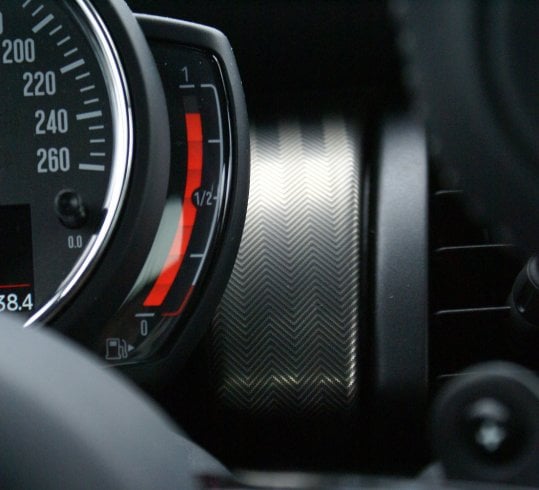 Wewnątrz okręgu okalającego wspomniany ekran systemu inforozrywki w Mini (systemu Mini Connected), producent umieścił listwę z diodami LED RGB, za pomocą której samochód może wyświetlać informacje np. o głośności, ustawieniach aktualnie regulowanego parametru (np. balansu dźwięku, jak na powyższym filmie), obrotach silnika, pokazywać odległość do najbliższego punktu nawigacyjnego (coraz krótszy pasek LED) i wiele, wiele więcej. Wykorzystanie paska LED okalającego ekran nie tylko jako świetlistego zdobnika, ale również jako dodatkową warstwę komunikacji wizualnej uważam za świetny pomysł.
