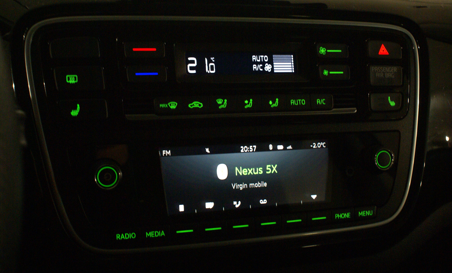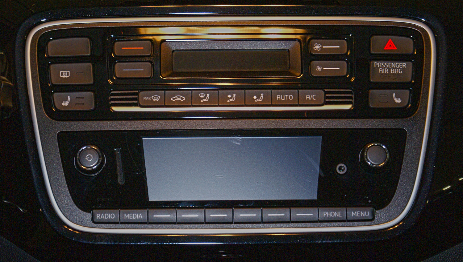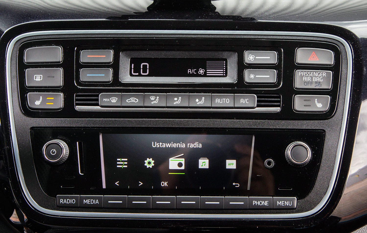 Wracając jeszcze do panelu klimatyzacji, w ponadstandardowo wyposażonym egzemplarzu testowym Škody Citigo Style umożliwiał on nie tylko regulację temperatury (klimatyzacja jest jednostrefowa), ale również stopień nawiewu i jego kierunek, włącznie z opcją automatycznego sterowania klimatyzacją. Dodatkowo panel ten pozwala uaktywnić dwustopniowe ogrzewanie każdego z przednich foteli.