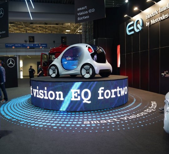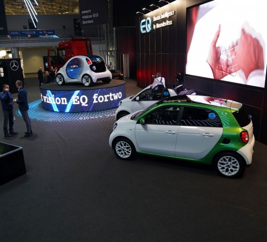 Oczywiście i tu nie mogło zabraknąć premiery auta elektrycznego – w Poznaniu dokonano uroczystej odsłony najnowszego w pełni elektrycznego modelu Mercedes-Benz EQC. Oprócz tego pokazano elektryczne modele z miejskiej serii Smart EQ (Smart EQ forfour i Smart EQ Cabrio) oraz koncepcyjny model Smart Vision EQ fortwo.