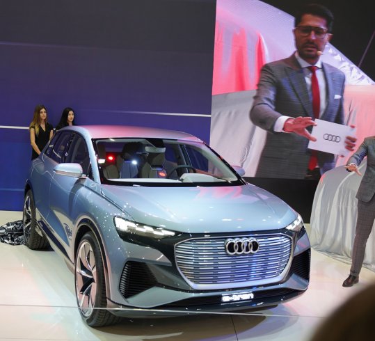 Audi Q4 e-tron concept, to kolejne auto, które do Polski trafiło bezpośrednio z zakończonego niedawno Salonu Motoryzacyjnego Genewa 2019. Auto to, według przedstawicieli marki daje pogląd na to, jak będzie wyglądać piąty już, seryjnie produkowany model Audi z wyłącznie elektrycznym napędem. Q4 e-tron ma trafić na rynek pod koniec 2020 roku. Pojazd wyposażono nie w jeden, lecz w dwa elektryczne silniki o łącznej mocy 225 kW, przekazywanej oczywiście na obie osie (quattro – znak rozpoznawczy marki). Deklarowane przyśpieszenie to 6,3 sekundy do 100 km/h, Prędkość maksymalna jest elektronicznie ograniczona do 180 km/h, natomiast deklarowany realny (WLTP) zasięg to 450 km. Q4 e-tron bazuje na modularnej platformie koncernu VAG przeznaczonej dla aut elektrycznych (platforma MEB), na której oparte zostaną również inne produkowane przez Grupę Volkswagen auta elektryczne.