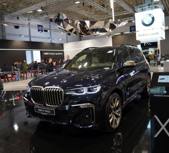 W tej samej hali nr 3, po pokazie marki Mercedes-Benz przeszliśmy na prezentację innego niemieckiego potentata – BMW. Bawarska marka pochwaliła się wieloma nowymi, prezentowanymi po raz pierwszy w Polsce modelami. Były to: BMW M850i xDrive w wersji Cabrio, najnowsza limuzyna BMW M760Li xDrive, oraz największy SUV w ofercie – nowe BMW X7. Wszystkie z tych aut wyposażono w najnowocześniejszy pokładowy system iDrive ID7 z BMW Live Cockpit 7.0, który znacznie poszerza zakres personalizacji funkcji pojazdu oraz zwiększa integrację auta z internetem. Oto wymienione auta: