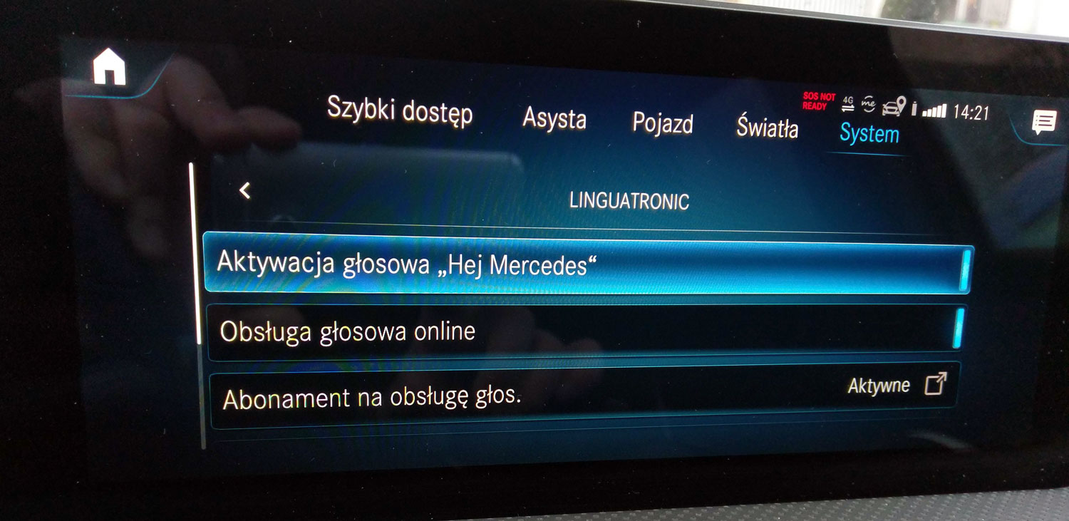 Liczba dostępnych funkcji, ustawień, opcji, parametrów itp. jest na tyle duża, że osoba, która pierwszy raz styka się z tym systemem może czuć się cokolwiek zagubiona. Oczywiście technologiczny geek z atencją będzie zgłębiać tajniki komputerowego systemu Mercedesa, ale mniej doświadczonych taki poziom rozbudowy może nieco przerażać. Przyznam, że sam byłem lekko sfrustrowany, gdy chciałem w klasyczny sposób, tj. za pomocą ustawień menu, wyłączyć głosowe zapowiedzi nawigacyjne – nie chciałem po prostu aby komunikaty w stylu “przygotuj się do skrętu w lewo” itp. zagłuszały mi odbiór radia czy muzyki ze sparowanych z pokładowym systemem usług online. Po prostu nie mogłem znaleźć odpowiedniej opcji, w końcu mnie olśniło. Powiedzałem “Hej Mercedes” – auto ładnym żeńskim głosem (w końcu Mercedes to kobiece imię) odpowiedziało “Tak, słucham?”. Dodałem “Wyłącz zapowiedzi nawigacyjne”. I…. zrobione!