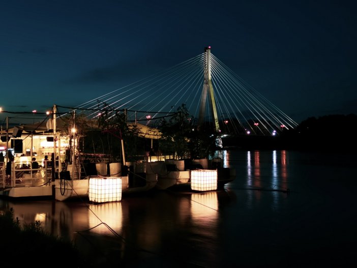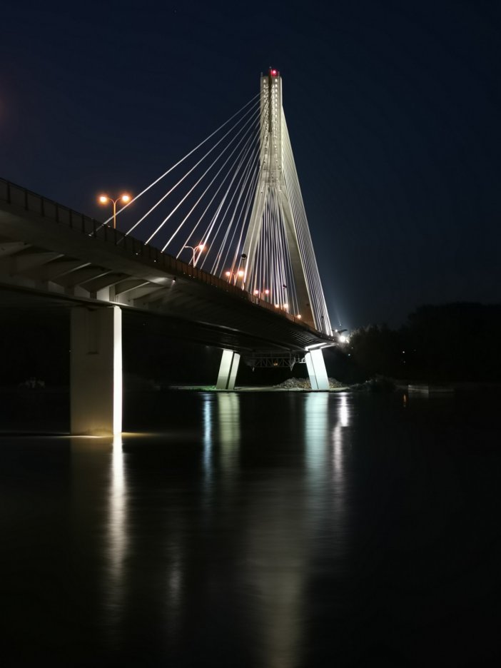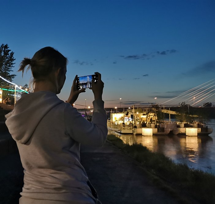 Ostatni etap finału – miasto nocą. Celowaliśmy z zakończeniem wyjazdu w okolice 20:31, kiedy zachodziło słońce. Hania i Marek rozpoczęli tę część FOTOPOJEDYNKU od Stadionu Narodowego, potem przeszli na plażę i Mostem Poniatowskiego dostali się na bulwary po lewej stronie Wisły. Tu fotografowali już z towarzyszeniem nocnych świateł. Wieczorna część rywalizacji była interesująca także ze z względu na szczególne możliwości Huawei P30 Pro dotyczące rejestracji zdjęć przy małej ilości światła. Nieopodal rzeźby Syrenki finał FOTOPOJEDYNKU dobiegł końca.