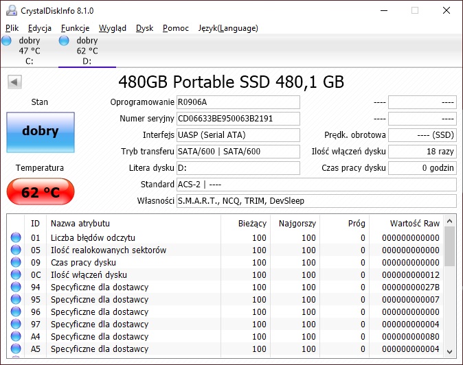 | Dostępne pojemności | 120/240/480 GB (testowany 480 GB) |