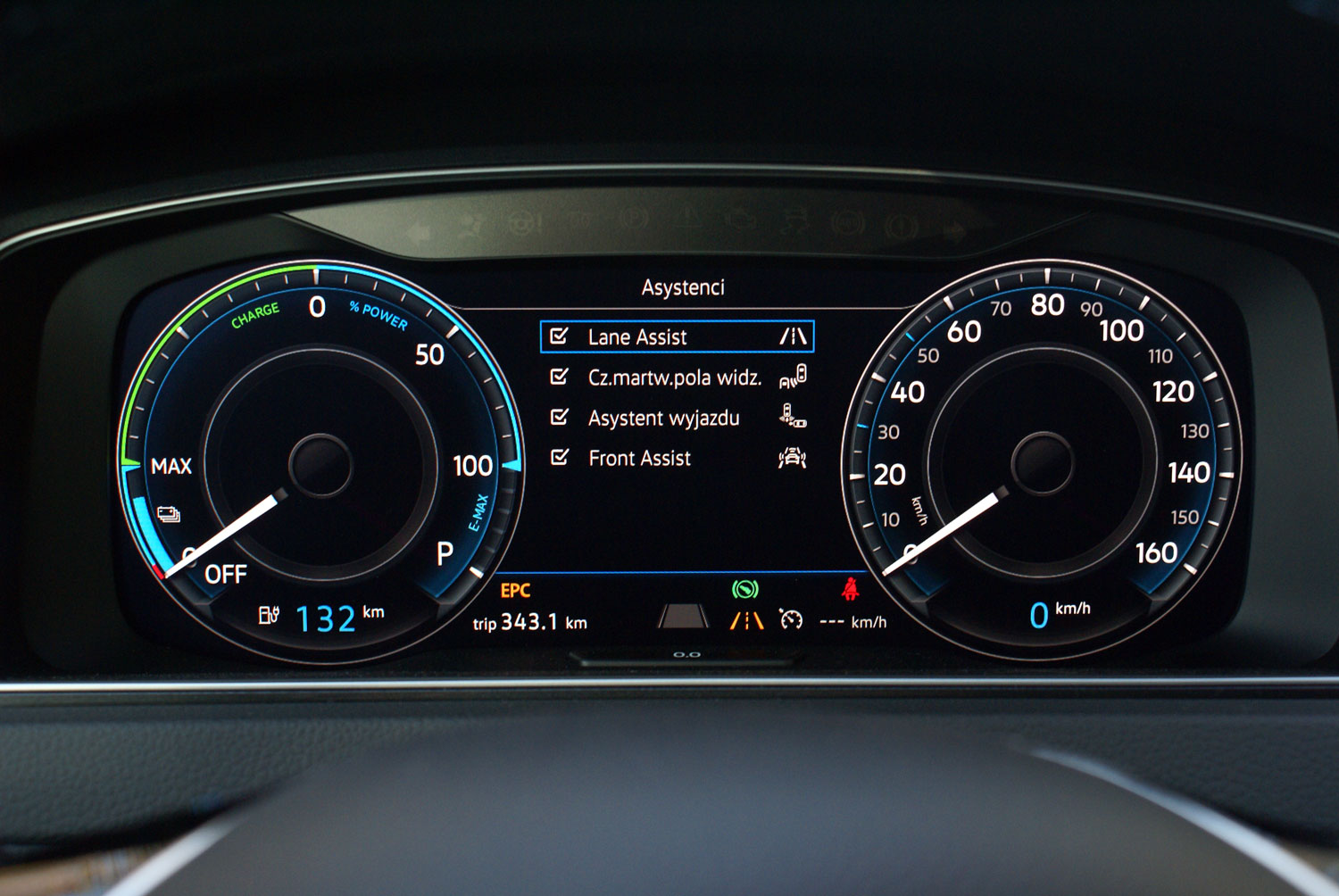 Wspomniałem wcześniej o obecności adaptacyjnego tempomatu (działa w pełnym zakresie prędkości) współpracującego z systemem Front Assist, czyli detekcją pojazdów jadących przed nami wraz z kontrolą zachowania bezpiecznej odległości pomiędzy e-Golfem a autami poprzedzającymi. Oprócz tego testowy egzemplarz wyposażony był w opcjonalny (kosztujący 4060 zł; to chyba najdroższy element dodatkowego wyposażenia w egzemplarzu testowym) Pakiet Drogowy Plus. Pakiet ten zawiera następujące składniki: asystent jazdy w korki (Traffic Jam Assist), Asystent pasa ruchu (Lane Assist) oraz Emergency Assist. Uzupełnieniem pakietu są jeszcze: czujnik martwego pola obserwacji oraz Asystent wyjazdu. Pokrótce wyjaśniam jakie jest znaczenie poszczególnych systemów: