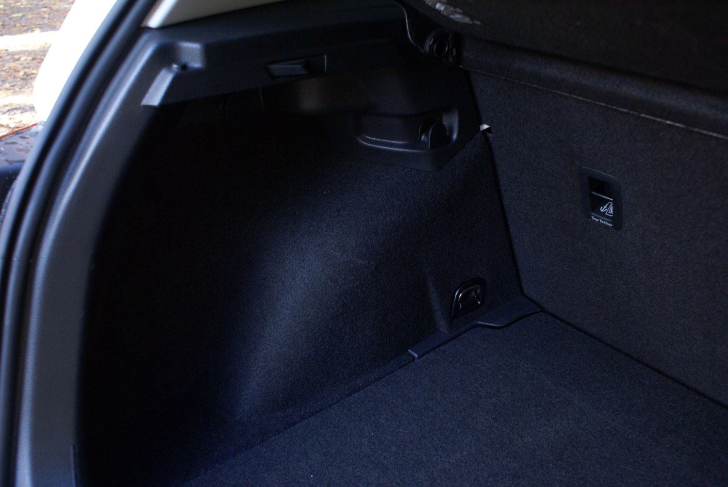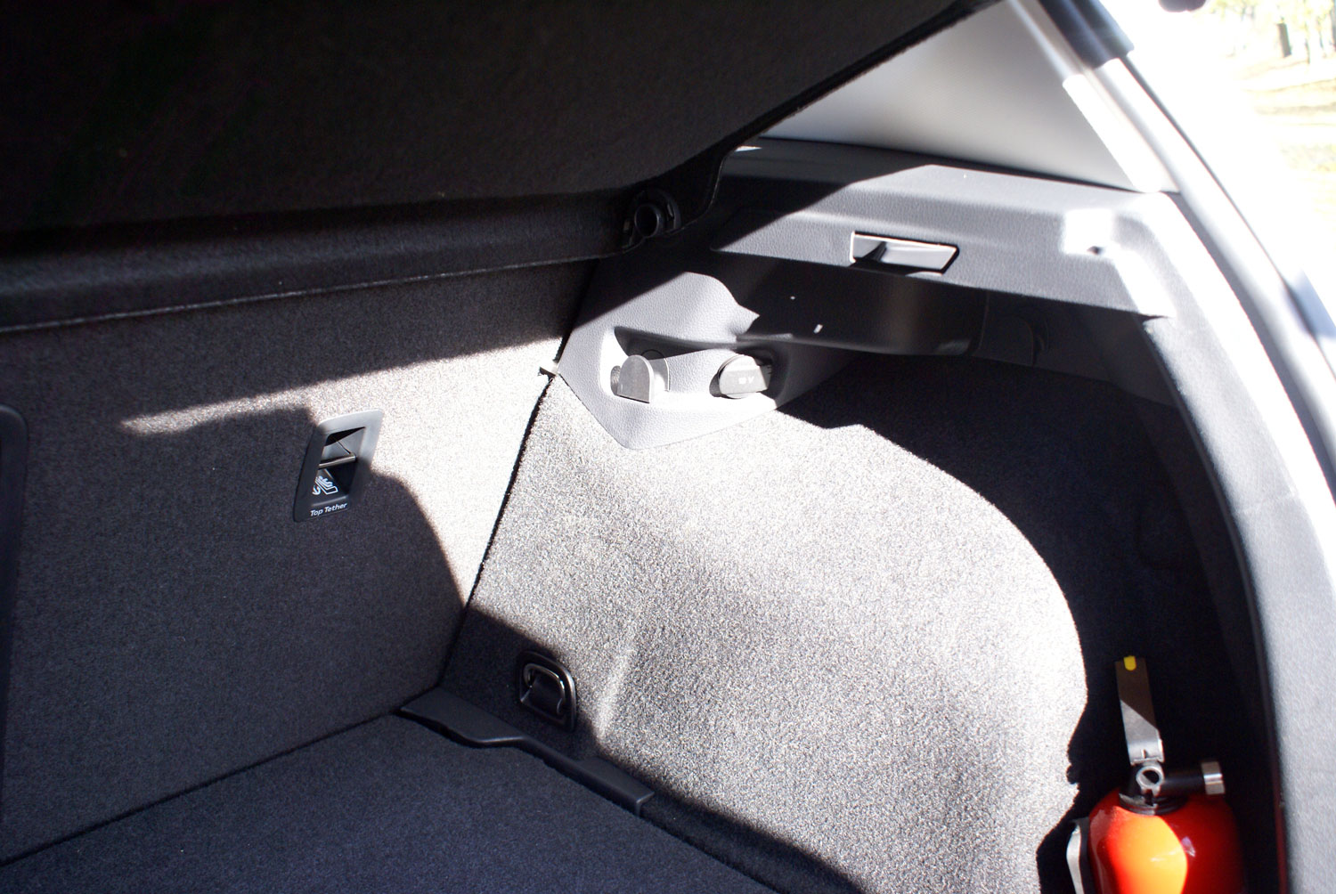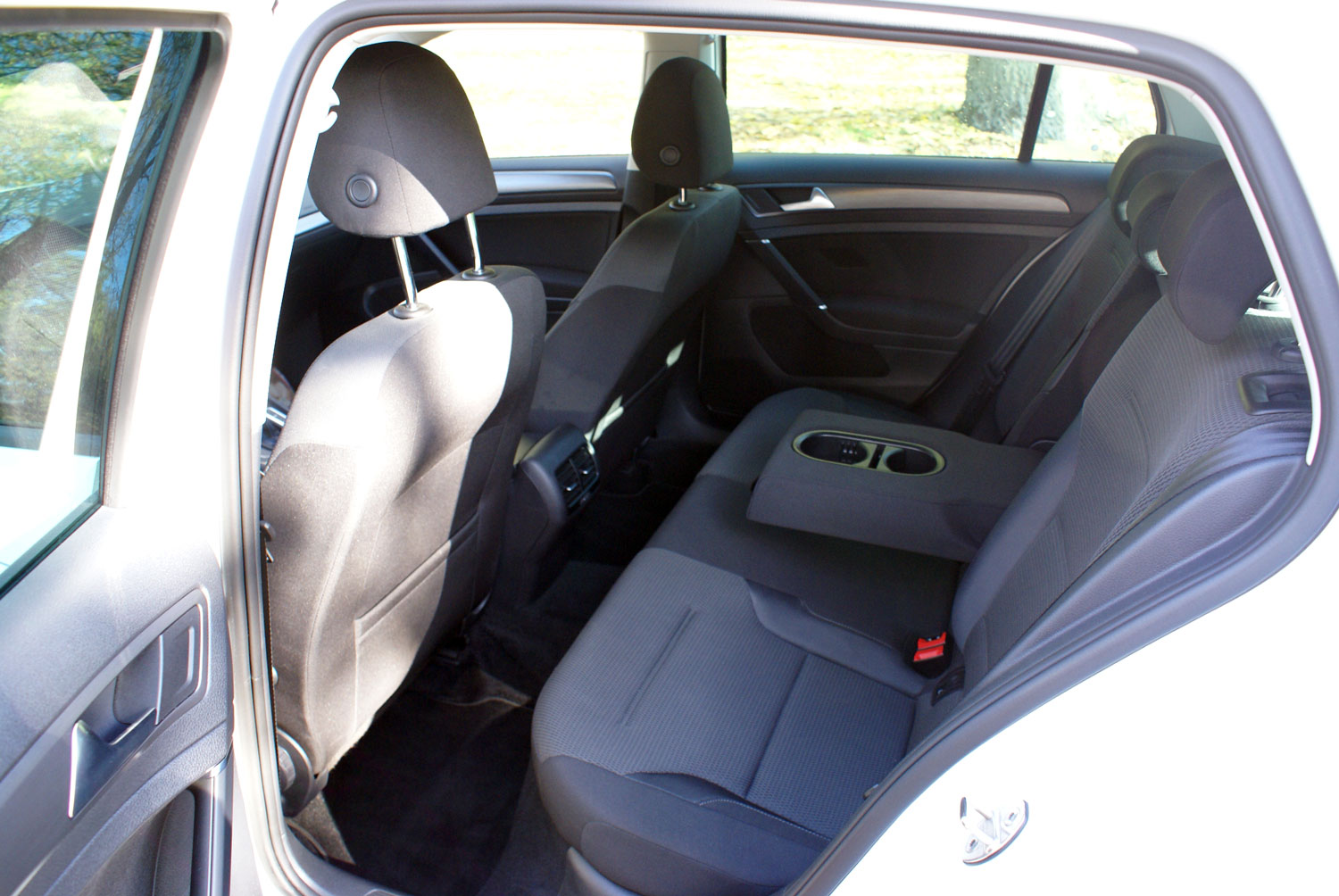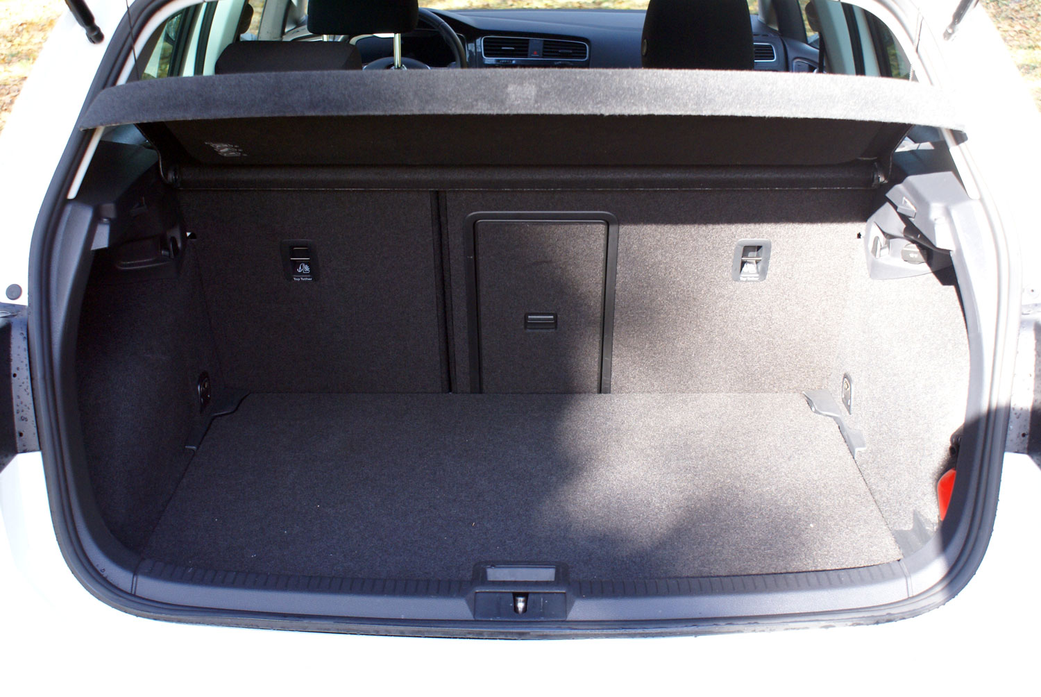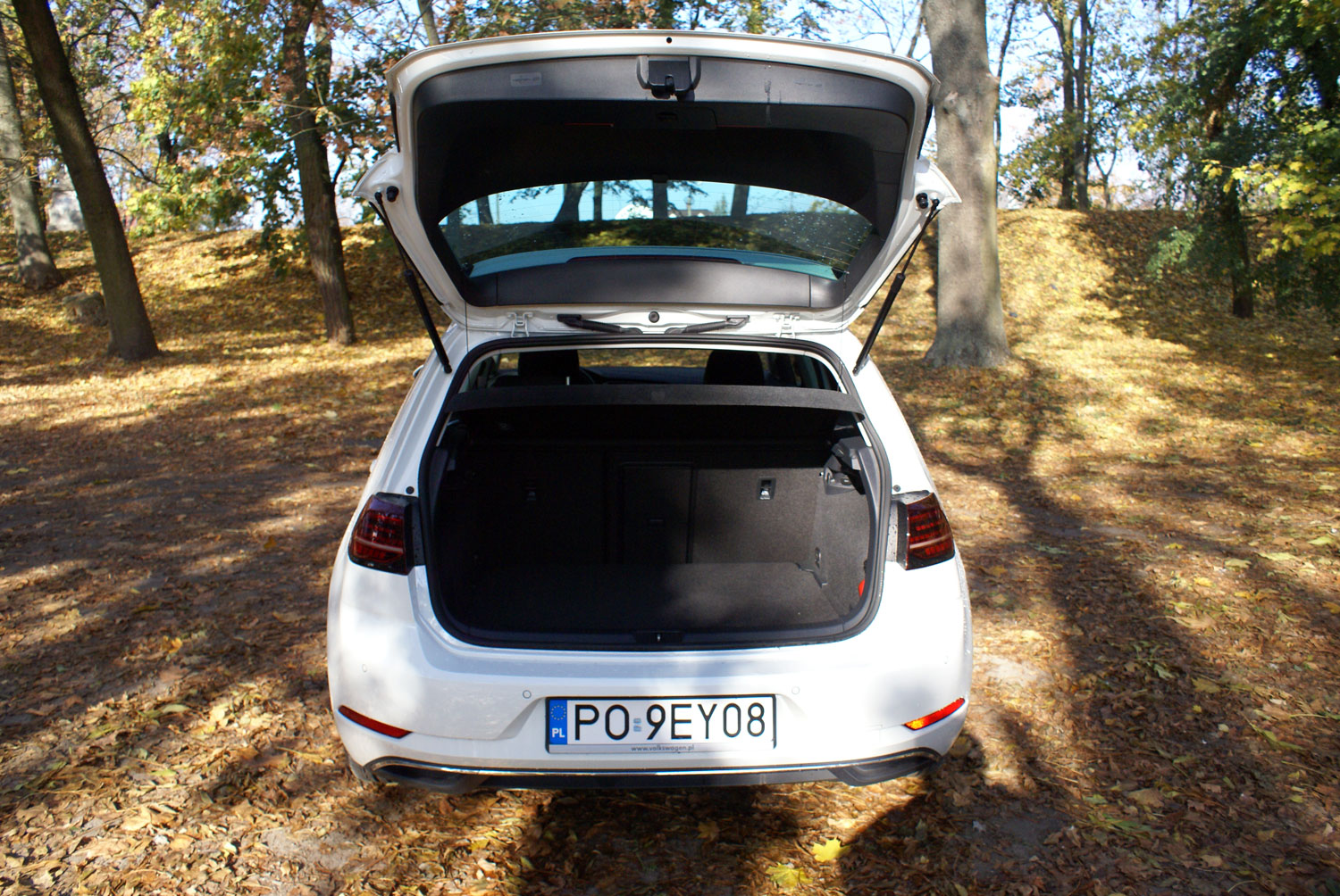 Volkswagen e-Golf różni się od spalinowych wersji nieco mniejszym rozmiarem przestrzeni bagażowej – wynika to stąd, że projektanci Volkswagena musieli gdzieś upakować akumulatory. Jednak od razu uspokajam, elektryczny Golf ma nieznacznie mniejszy bagażnik, jego pojemność to 341 litrów przy normalnie rozłożonych siedzeniach tylnych i jest to o 39 litrów mniej niż w wersji spalinowej. Podłoga przestrzeni bagażowej jest płaska, a próg załadunku niezbyt wysoki. W razie potrzeby przestrzeń bagażową możemy zwiększyć do 1231 litrów składając tylną kanapę (różnica względem wersji spalinowej się nie zmienia, wciąż będzie to o 39 litrów mniej przestrzeni). W bagażniku nie zabrakło praktycznych dodatków takich jak haczyki na zakupy czy 12-woltowe gniazdko samochodowej instalacji elektrycznej.