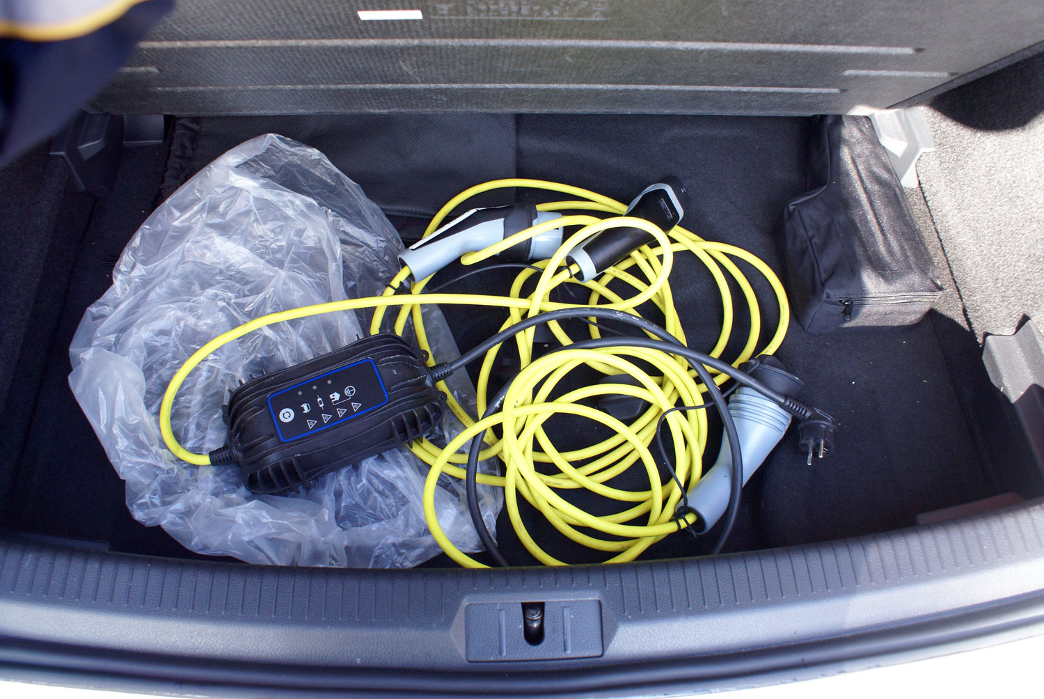 Niestety, posiadacze e-Golfa muszą się pogodzić z tym, że w aucie tym producent nie przewiduje miejsca na koło zapasowe, nawet na dojazdówkę. Jedyne czym możemy ratować się w razie uszkodzenia opony to zestaw naprawczy z kompresorem. Pod płaską podłogą bagażnika znalazło się za to miejsce na przenośną ładowarkę umożliwiającą ładowanie e-Golfa ze zwykłego gniazdka 230 V. W testowym egzemplarzu oprócz tego dodano także kabel do ładowania prądem zmiennym do stacji ładujących z gniazdkami Type 2 pozbawionymi własnego kabla przyłączeniowego, ale tutaj uwaga – kabel ten jest wyposażeniem opcjonalnym i jeżeli potencjalny nabywca e-Golfa chciałby również go posiadać, musi liczyć się z dopłatą 580 zł. Wspomniana przenośna ładowarka z gniazdek 230 V to wyposażenie standardowe e-Golfa.