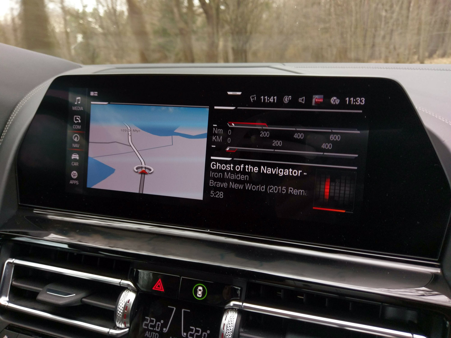 Tak mocna jednostka napędowa współpracująca z szybko działającą przekładnią automatyczną pozwala osiągnąć pierwszą setkę już po 3,7 sekundy. Prędkość maksymalna tego monstrum jest elektronicznie ograniczona do 250 km/h. W trakcie jazd testowych poruszaliśmy się po drogach publicznych, więc nawet nie przyszło nam przez myśl, by sprawdzić faktyczny potencjał tej maszyny. Natomiast, czy da się tym samochodem normalnie, spokojnie jeździć? Jak najbardziej. Wytyczona przez BMW trasa przebiegała przez różnego typu drogi, zarówno fragment trasy szybkiego ruchu, jak i drogi znacznie pośledniejszej kategorii. Pozwoliło to nam sprawdzić zarówno systemy asystujące pojazdu (na trasie szybkiego ruchu i w ruchu miejskim), jak i ocenić skuteczność pracy zawieszenia (na drogach lokalnych gorszej, a niekiedy po prostu złej kategorii).