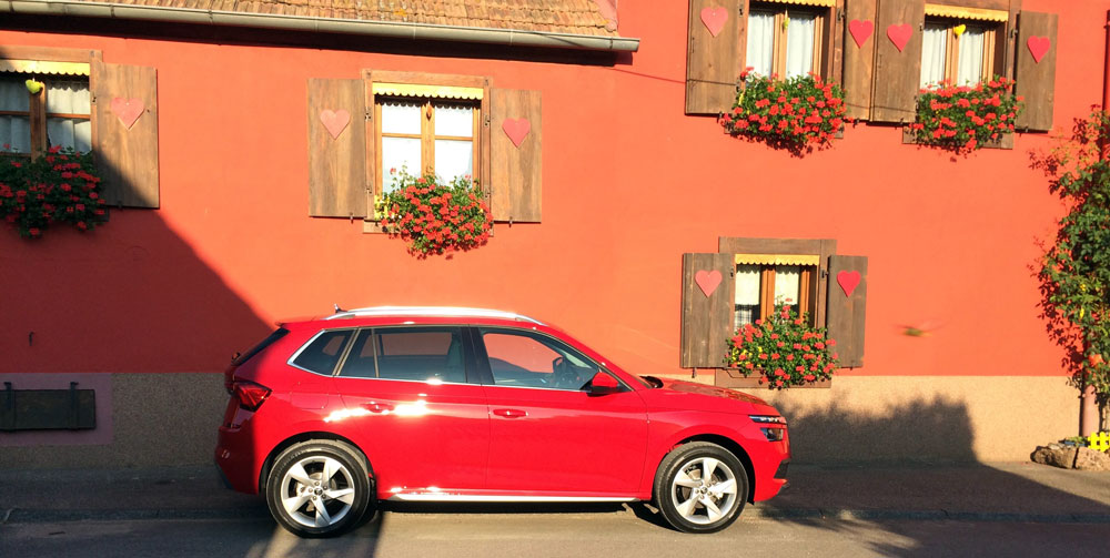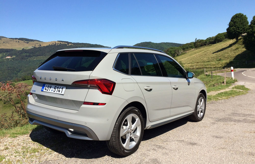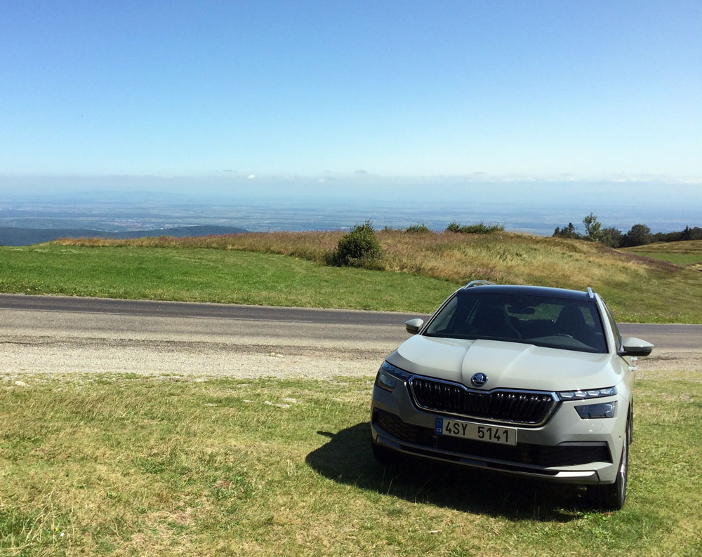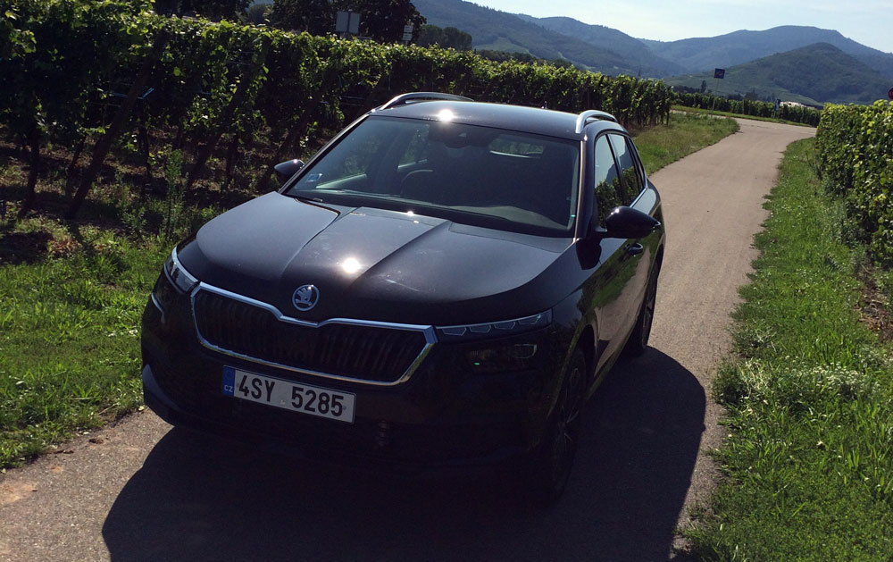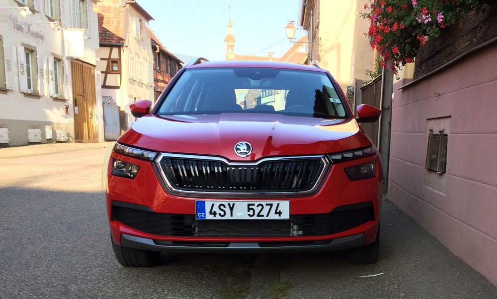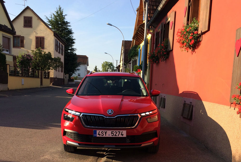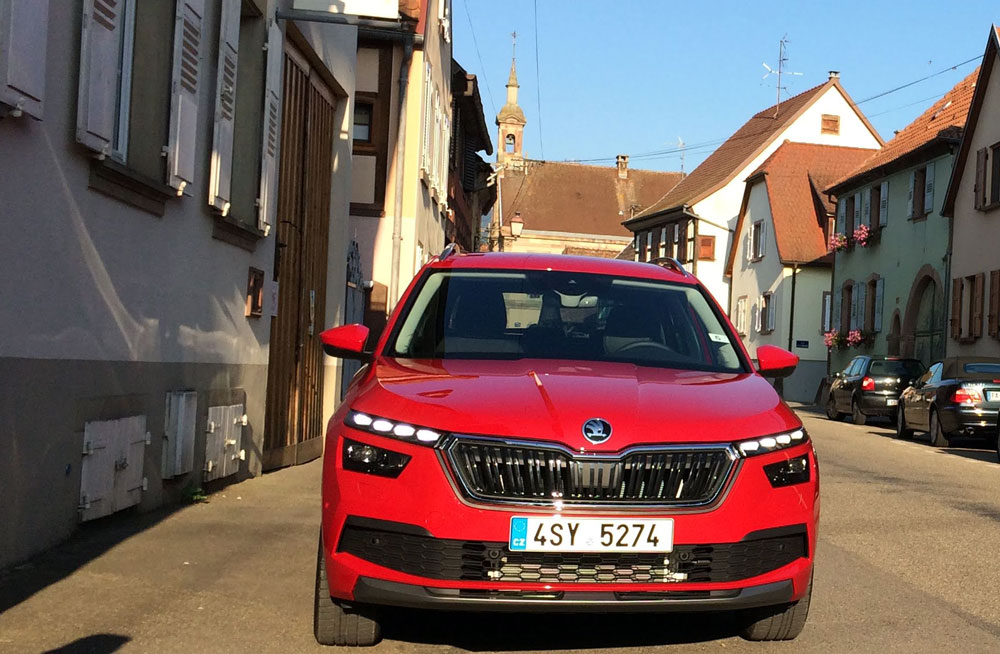 Škoda Kamiq to auto, które może się podobać. Charakterystyczne, przedzielone reflektory przednie to znak rozpoznawczy współczesnych modeli czeskiej marki. Testowany egzemplarz wyposażony był w pełne światła LED, przy czym te do jazdy dziennej umieszczone są wyżej, bezpośrednio pod linią maski. 115-konny silnik benzynowy to jednostka w zupełności wystarczająca na większość dróg, z jakimi auto z racji swoich gabarytów może się mierzyć. Kompaktowy, zwarty SUV jest dość zwinny i dobrze radził sobie na bardzo krętych, górskich drogach Alzacji. Co więcej, nasze obawy, czy jednostka poradzi sobie z niemal 20-stopniowymi przewyższeniami, na które trzeba było wjechać okazały się niepotrzebne. Owszem, podczas jazdy pod górę, auto reagowało na wciśnięcie pedału przyspieszenia z niewielkim opóźnieniem, ale silnik żwawo nabierał impetu i właściwie rozpędzał pojazd. Również na drogach szybkiego ruchu i autostradach, jak i w ruchu miejskim, Kamiq radzi sobie całkiem dobrze. Hałas w kabinie podczas jazdy z prędkością 130 km/h (maksymalna, dopuszczalna na francuskich autostradach) nie jest zbyt duży i wciąż można normalnie, bez podnoszenia głosu rozmawiać z pasażerami. Nie bez znaczenia jest całkiem rozbudowana asysta kierowcy. Czym dysponuje kierowca Kamiq?