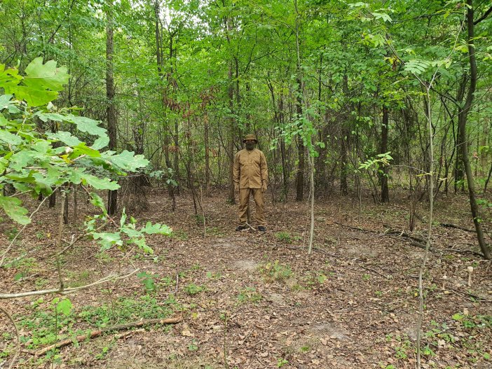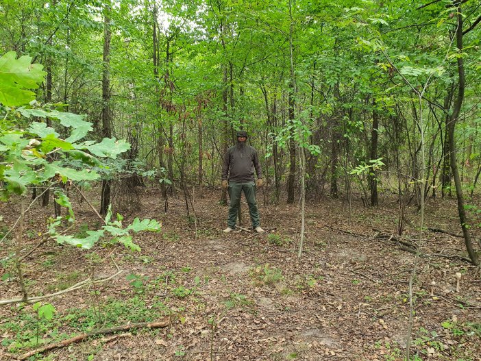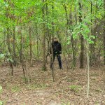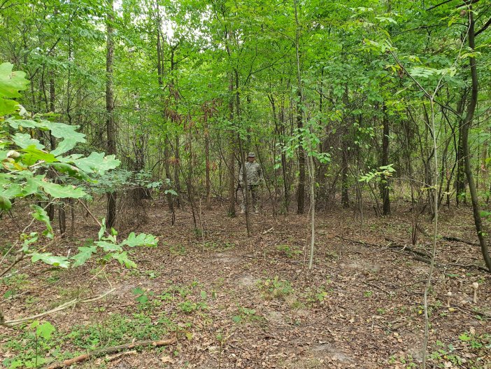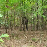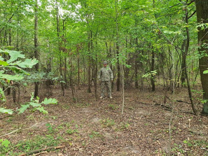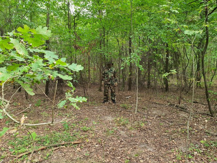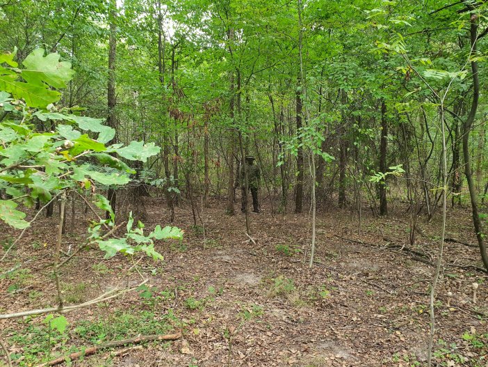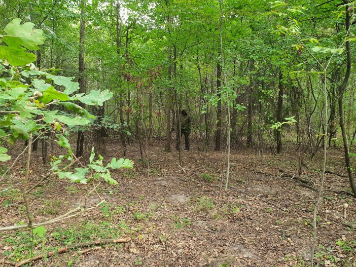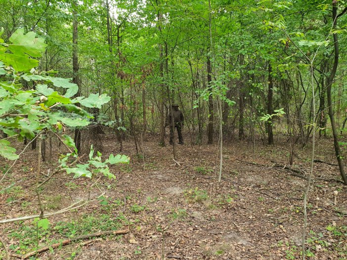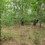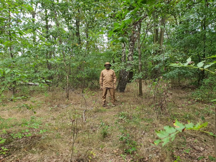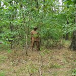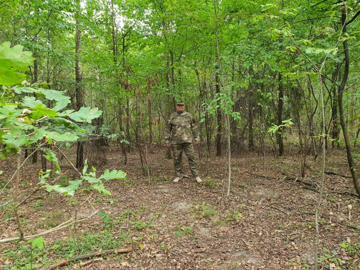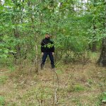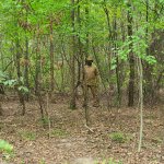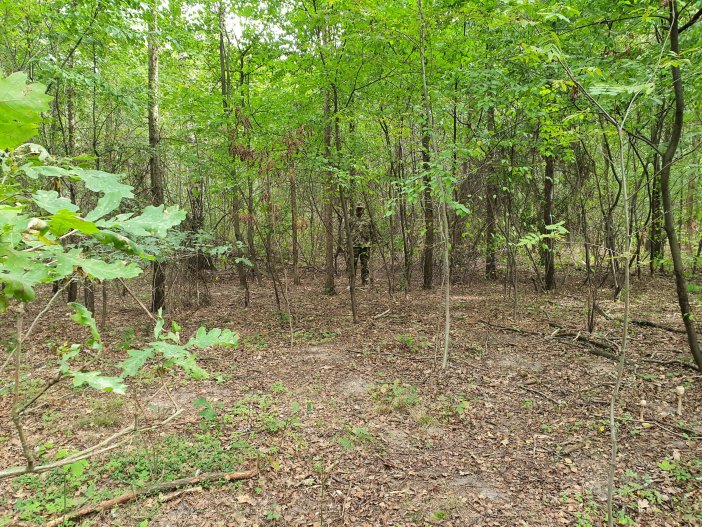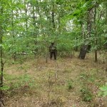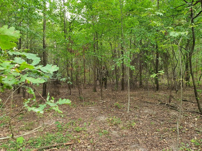 W pięknym lesie mieszanym wybraliśmy dwie lokacje – jedną jaśniejszą, otwartą z dominującymi podrastającymi drzewami liściastymi, a drugą ciemniejszą, z bijącymi się o światło młodymi świerkami. W każdej lokacji wykonaliśmy po trzy zdjęcia z każdym wzorem maskującym: