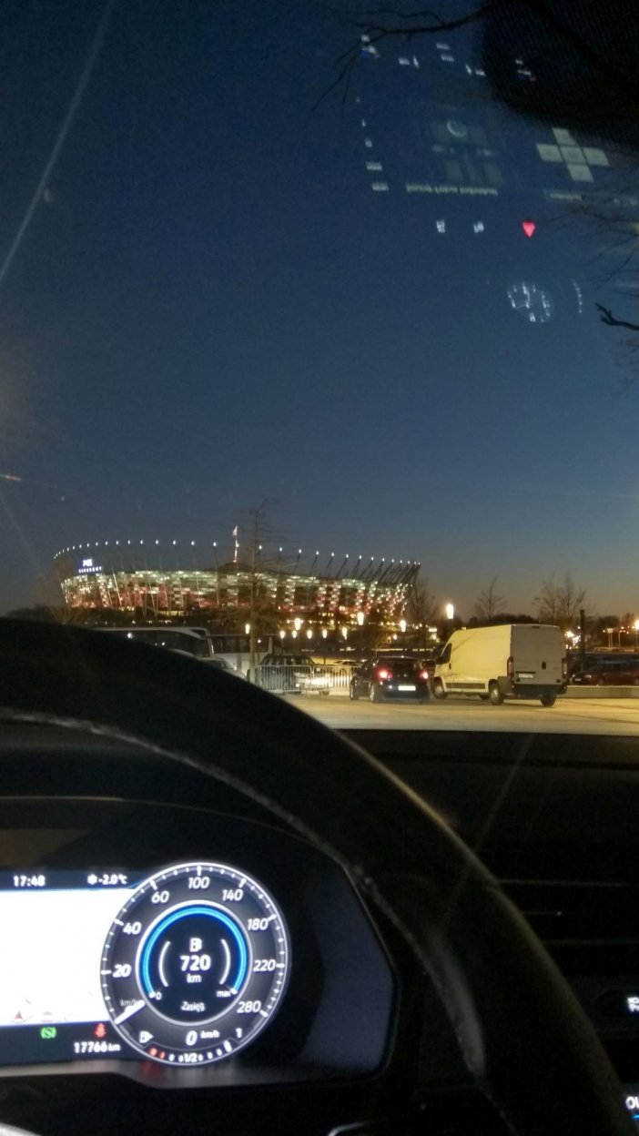Kiedy dotarliśmy w odpowiedni rejony trasy, aktywowałem wszystkie niezbędne funkcje Volkswagena Arteona, dodałem gazu i puściłem kierownicę. Pozorujemy sytuację – po to jest omawiany system – w której prowadzący auto zasnął lub stracił przytomność. Samochód utrzymuje się na drodze, płynnie podążając za pasem ruchu, uwzględnia łagodne i ciaśniejsze łuki. Prędkość zmniejsza się, bo kierowca nie naciska pedału gazu (utrzymywałaby się z ustawionym tempomatem). Oprogramowanie wysyła pierwsze ostrzeżenie: sygnał dźwiękowy i komunikat na ekranie nakazujący dotknięcie kierownicy. Nie robię tego, więc za chwilę jest następne ostrzeżenie. Nadal bez reakcji, wtedy samochód próbuje mnie obudzić szarpnięciem hamulca i pasów. Znowu brak reakcji, teraz Emergency Assist już ma pewność, że kierowca nie kontroluje auta. System uruchamia procedurę: samochód zaczyna wykonywać delikatne ruchy w stronę obu krawędzi pasa, mruga światłami awaryjnymi, co ma ostrzec innych kierowców przed niebezpieczną sytuacją i skłonić do zachowania ostrożności. Pojazd skanuje drogę w poszukiwaniu bocznego pasa, na którym można bezpiecznie zatrzymać się. Jeśli jechalibyśmy lewym, wcześniej Arteon samodzielnie zjechałby na prawy, upewniając się, że może bezkolizyjnie wykonać manewr. Pojawia się postojowy pas z przerywaną linią, jedziemy już wolno. Kierownica wykonuje lekki skręt w prawo, zjeżdżamy na bok. Auto zatrzymuje się pod koniec rezerwowego pasa drogi, zaparkowane bezpiecznie przy ruchliwej drodze koło Sochaczewa.