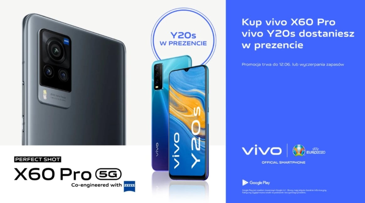 Kosztujący 3699 złotych vivo X60 Pro 5G wpadnie do sklepów już 29 maja z wyjątkową ofertą, która sprawi, że dokonany do 12 czerwca zakup zapewni Wam… drugi smartfon. Właśnie tak, zupełnie inny model, ale nie liczcie na coś wspaniałego, bo w grę wejdzie znacznie mniej imponujący vivo Y20S. Kto jednak zagląda darowanemu smartfonowi w specyfikację?