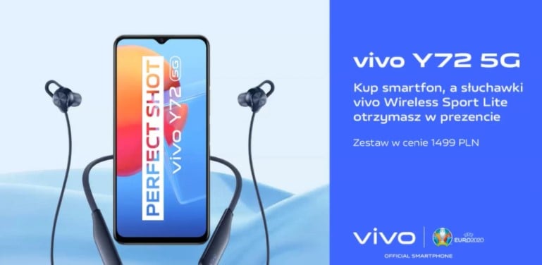Model vivo Y72 5G jest już dostępny w sprzedaży w Polsce, a kupić możemy go za 1499 złotych. Jeśli zdecydujemy się na jego zakup, otrzymamy w prezencie słuchawki Vivo Wireless Sport Lite, ale taka okazja trwa tylko do końca czerwca. Bądźcie czujni.