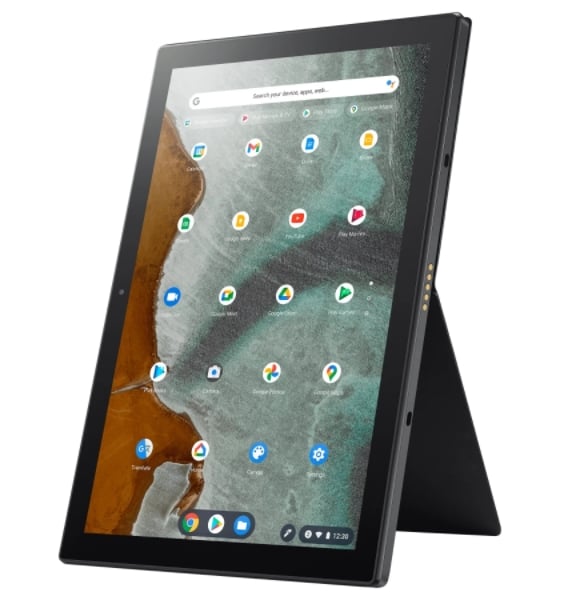 ASUS Chromebook Detachable CM3 ma pełen dostęp do sklepu z aplikacjami Google Play, a także do poczty Gmail, Dokumentów, Dysku, Kalendarza czy Meeta. Możemy również korzystać z Asystenta głosowego Google. Całość dopełnia 12-miesięczna subskrypcja usługi Google One z 100 GB zapleczem pojemnościowym.