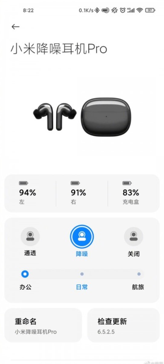 Słuchawki Mi FlipBuds Pro mają być wyposażone w 11 mm dynamiczny “ultra-liniowy” (cokolwiek to znaczy) przetwornik, a przede wszystkim mają wyróżniać się aktywną redukcją szumów (ANC) na poziomie do 40 dB. Z kolei na załączonych poniżej grafikach możecie zobaczyć menu ustawień, gdzie możemy wybrać dla siebie jak najlepszy tryb redukcji szumów pośród dostępnych trzech (niski, średni, wysoki), choć nie zabraknie też trybu wzmacniania dźwięków z otoczenia.
