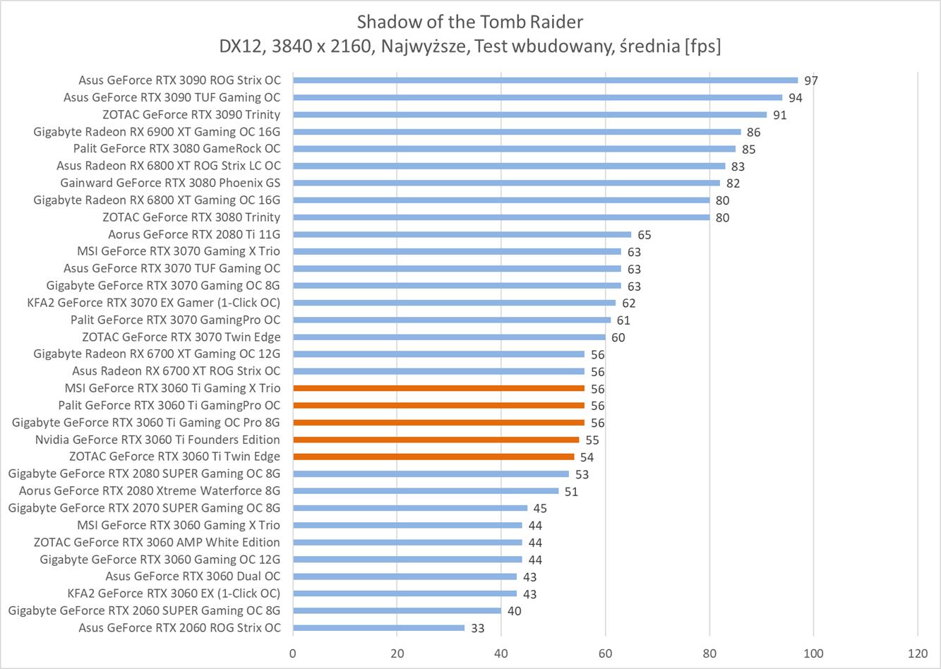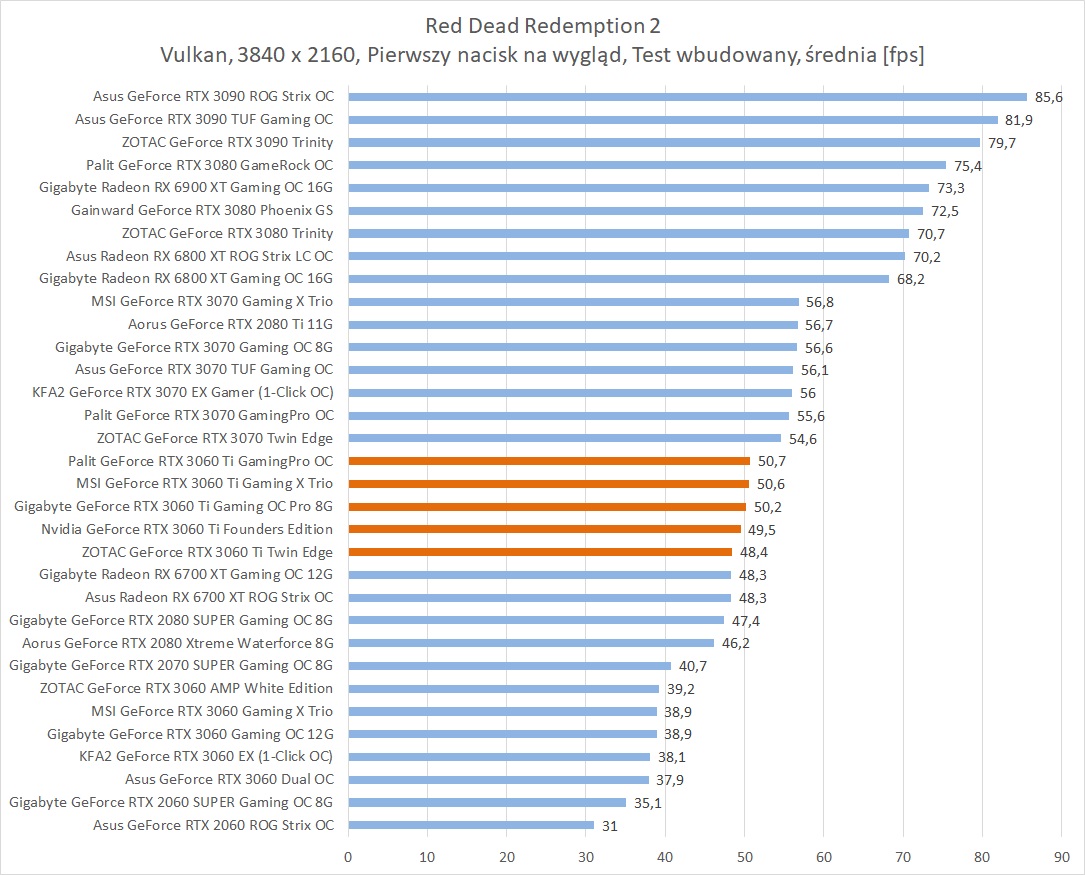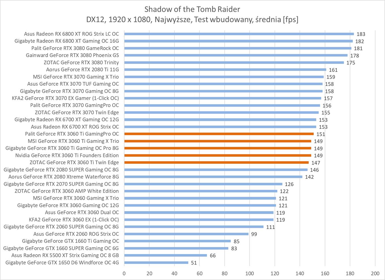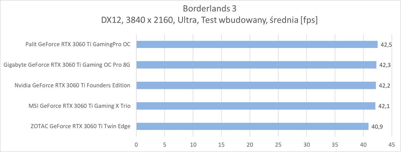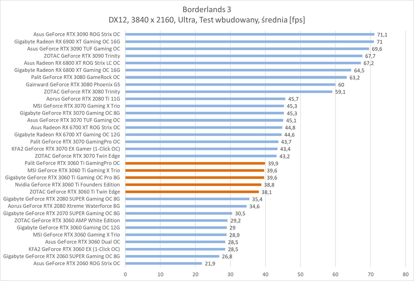 Średnia wydajność testowanych modeli GeForce RTX 3060 Ti