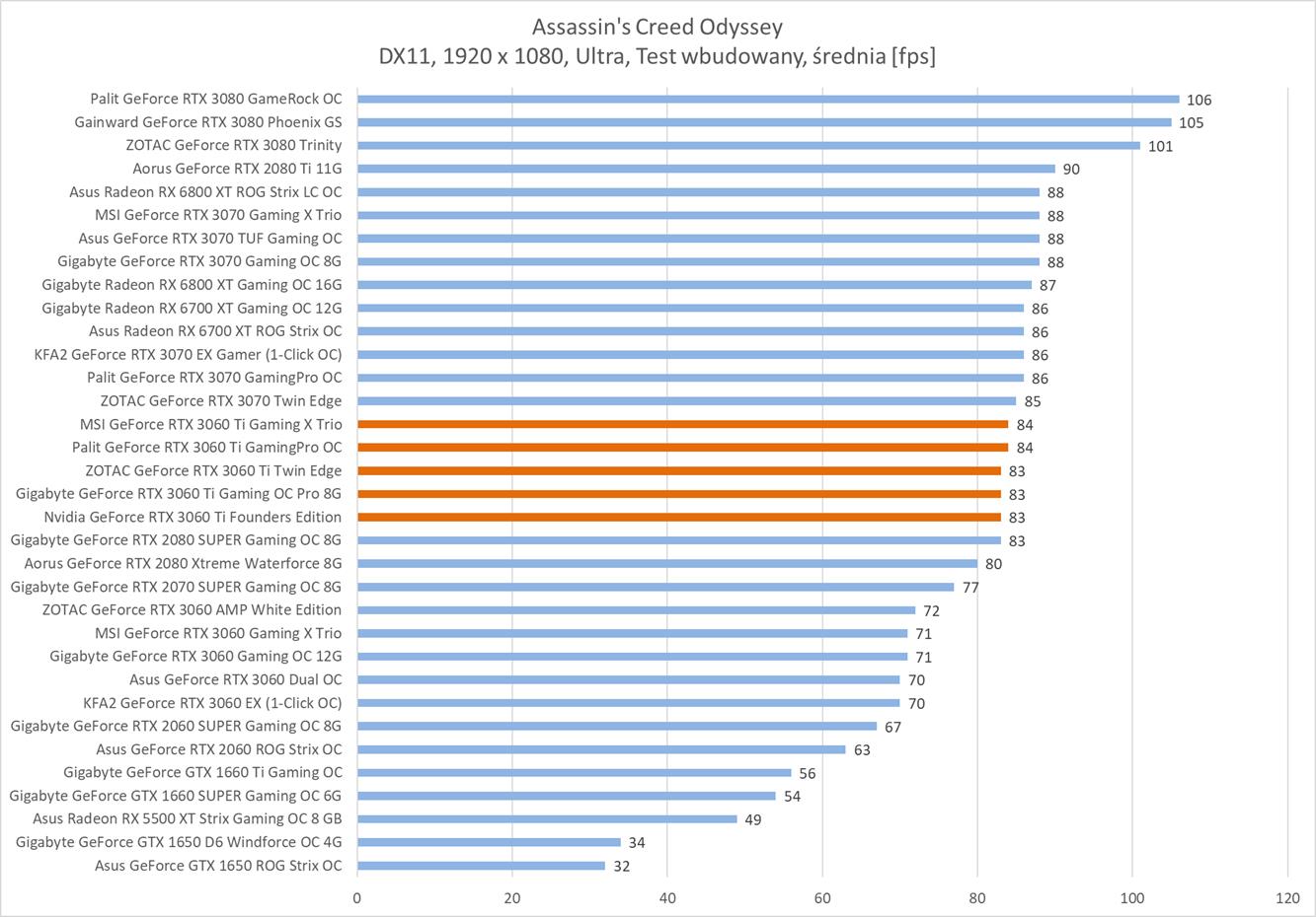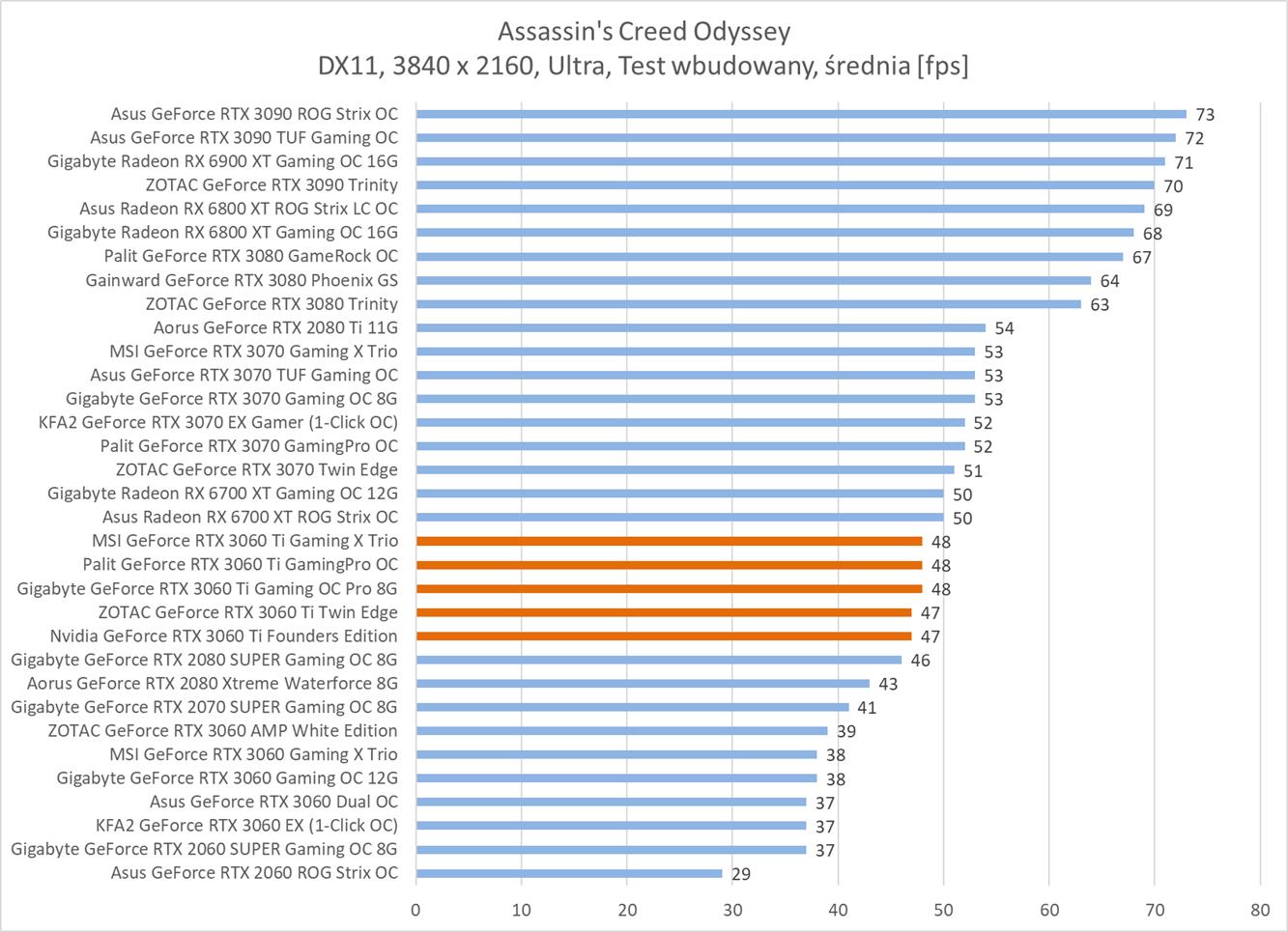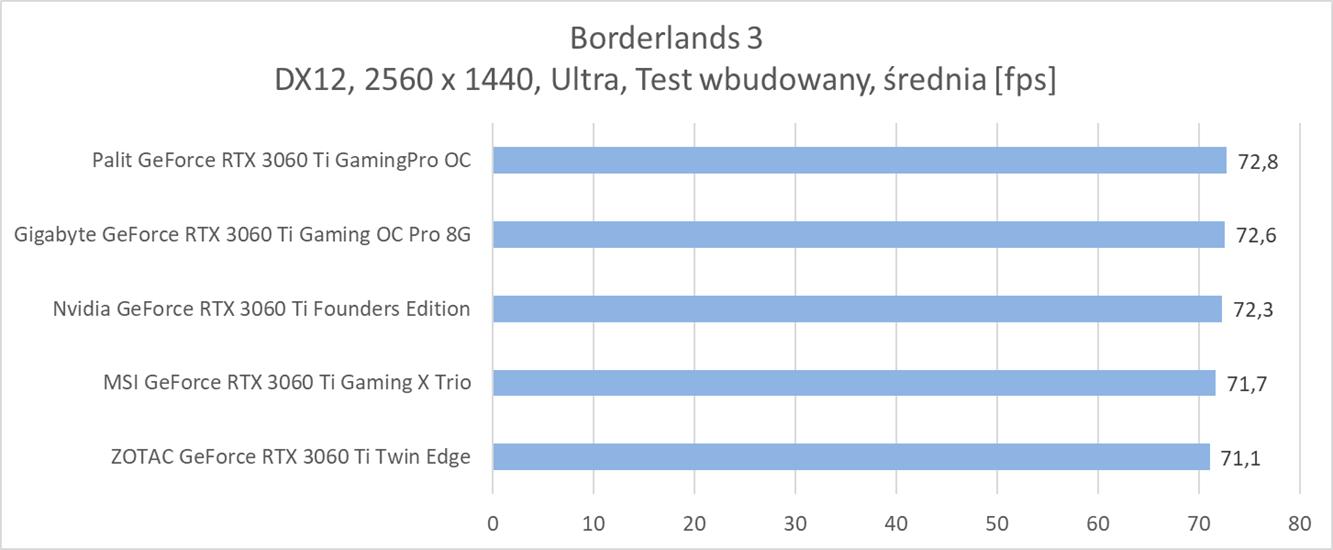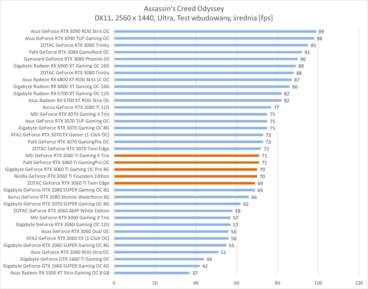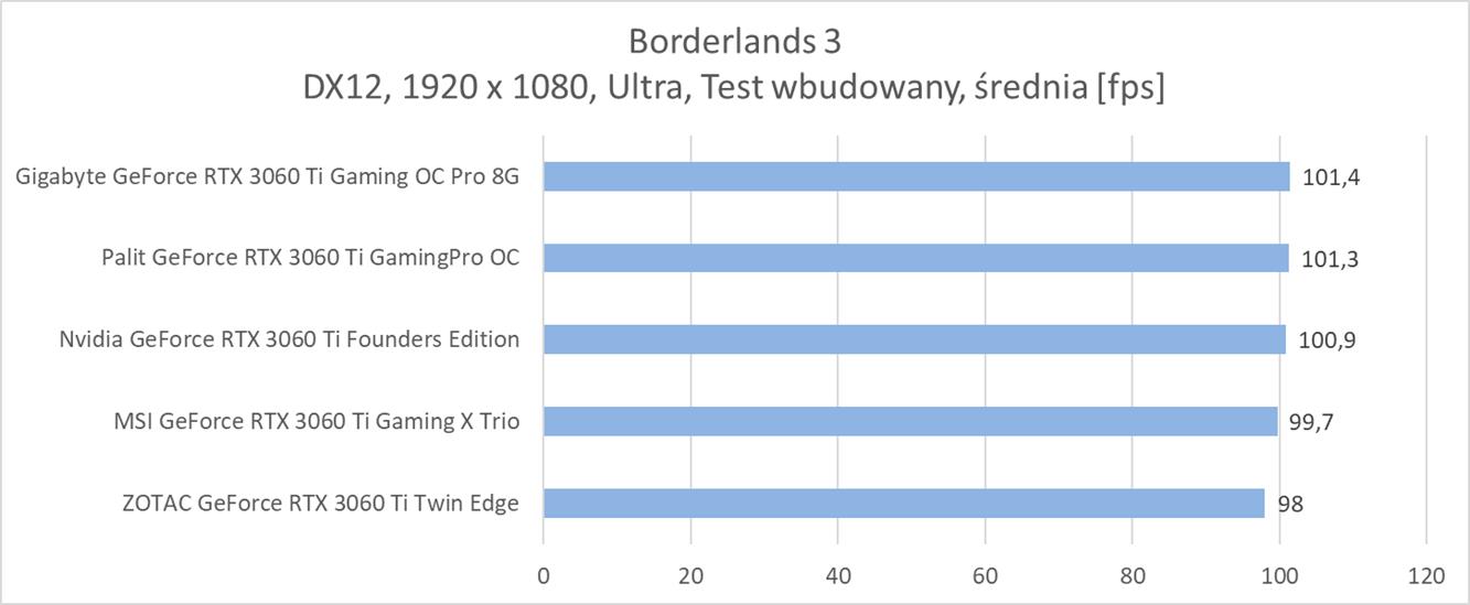 Średnia wydajność testowanych modeli GeForce RTX 3060 Ti