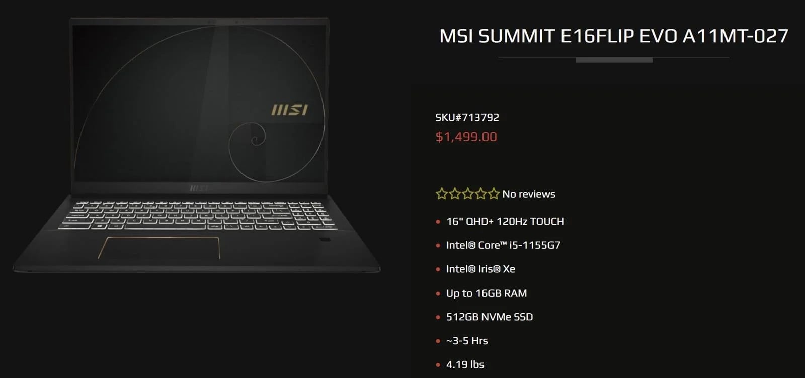 Oba procesory pojawiły się w laptopie MSI Summit E16 Flip Evo w wersji bez dedykowanej karty graficznej za kolejno 1499 i 1699 dolarów, które można zamawiać już w przedsprzedaży (via Videocardz).