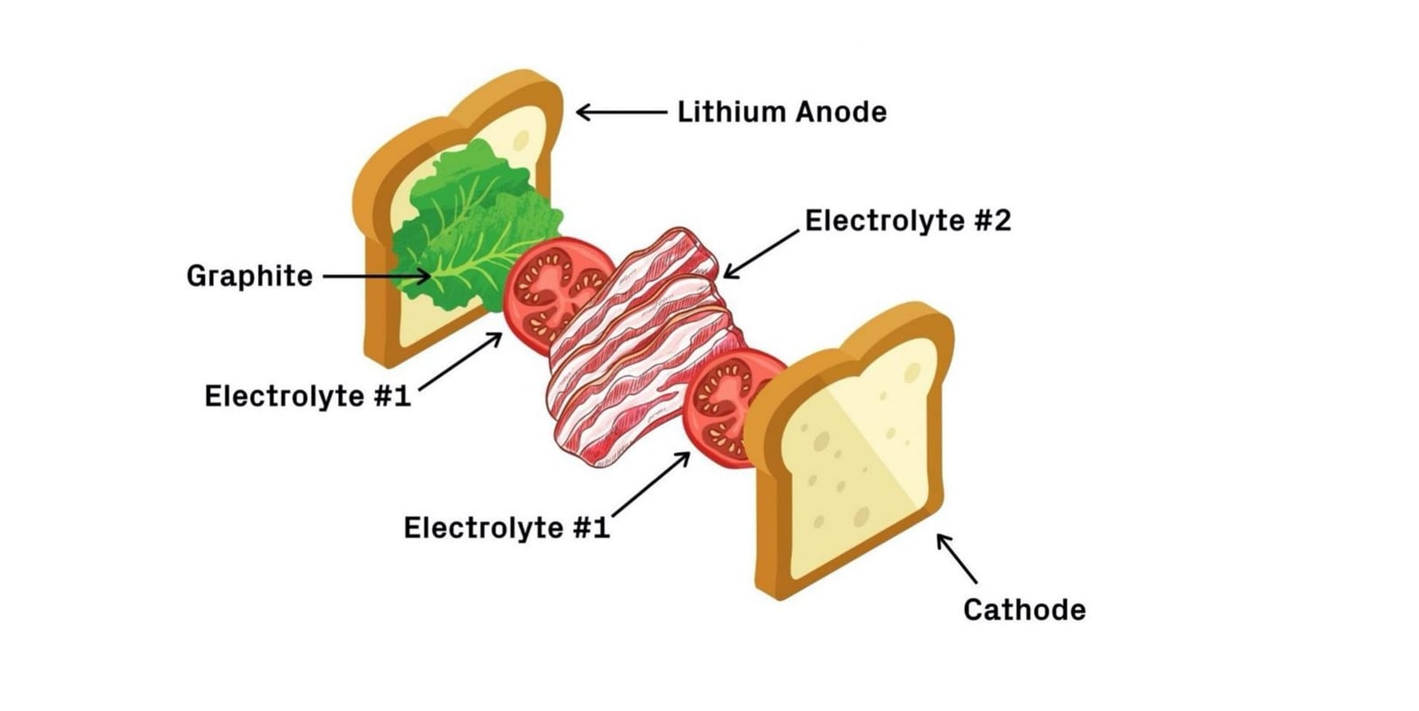Rozwiązanie tego problemu sprowadza się do… kanapkowej konstrukcji akumulatora. Ten w projekcie naukowców składa się z anody stworzonej z litu metalicznego z warstwą grafitu, która współpracuje z dwoma rodzajami ciekłego elektrolitu i katody, tradycyjnie przepuszczając jony tam i z powrotem podczas ładowania, czy rozładowywania.