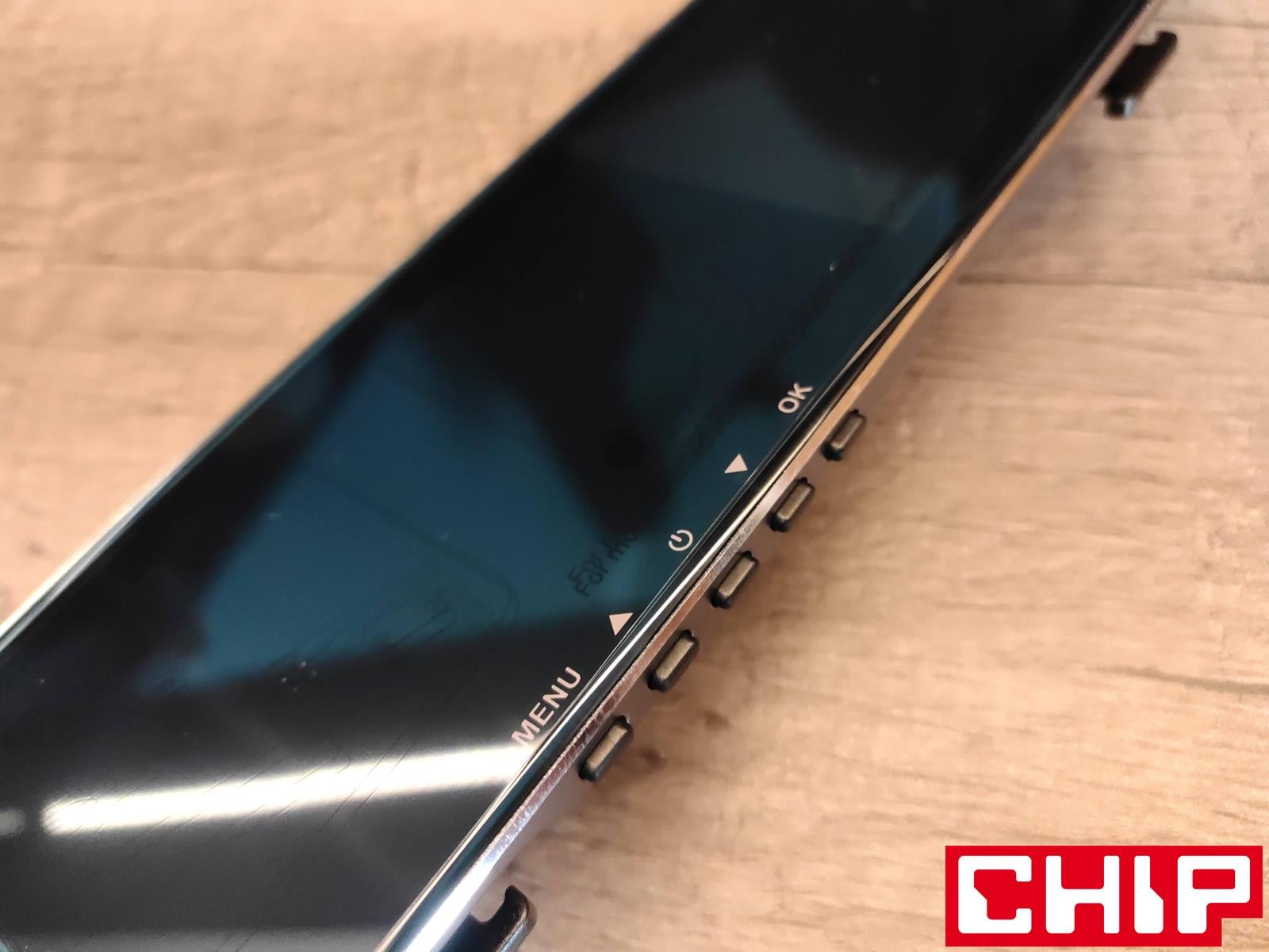 Po nim poruszamy się z użyciem pięciu przycisków na dolnej krawędzi, wśród których znajdziemy tradycyjny zestaw, czyli przycisk on/off, dwa przyciski przeznaczone do poruszania się po menu (góra/dół) i uzupełniający je przycisk potwierdzenia i menu.