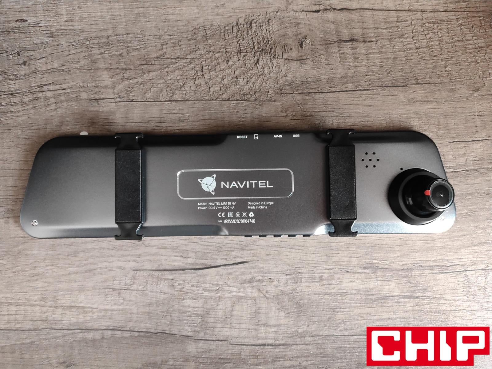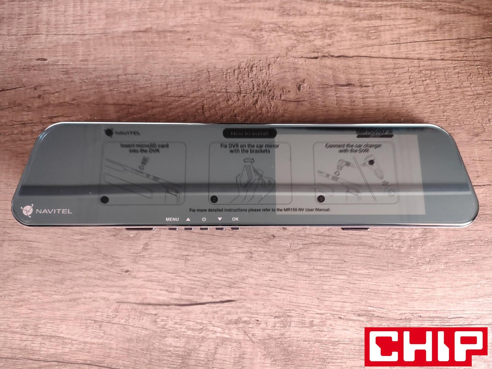 Niestety w oczy rażą początkowo dwie śrubki w rogach obudowy, jak również niepasujący zbytnio do srebrnego koloru obiektyw ustawiony pod kątem i dwa uchwyty montażowe z tworzywa sztucznego. Na szczęście na tę stronę wideorejestratora nie będziecie patrzeć zbyt długo, bo nawet z zewnątrz zostanie ona zasłonięta wewnętrznym lusterkiem. Znacznie więcej, a w rzeczywistości podczas każdej przejażdżki, będziecie wpatrywać się w tę najważniejszą część Navitel MR155 NV.