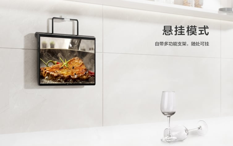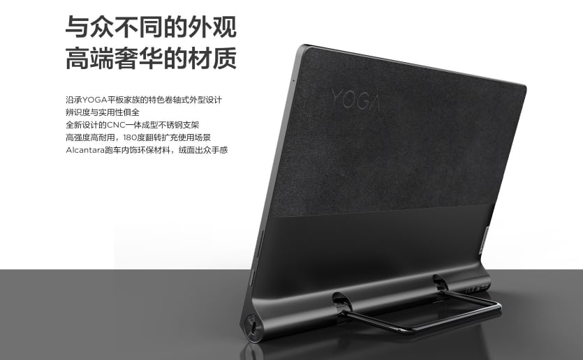 Nowość ta może pochwalić się walcowatą podstawą wykonaną ze stali nierdzewnej, która służy jako podpórka. Na obudowie znajdziemy też specjalny wieszak, pozwalający nam na zawieszenie Yoga Pad Pro w dowolnym miejscu na ścianie, czy dedykowanym ramieniu. Dzięki takiej konstrukcji możemy ustawić tablet pod różnymi kątami w dwóch różnych orientacjach.